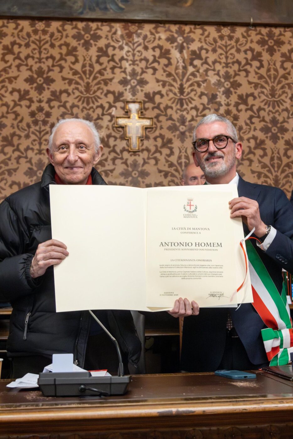 durante la seduta del Consiglio Comunale nella Sala Consiliare del Municipio di Mantova, si è svolta la cerimonia di conferimento della cittadinanza onoraria ad Antonio Homem, presidente della Sonnabend Collection Foundation.