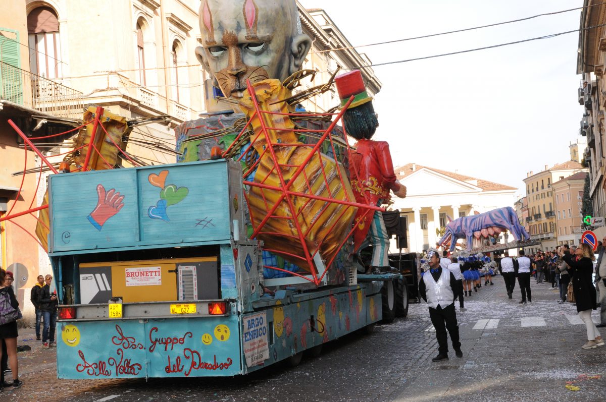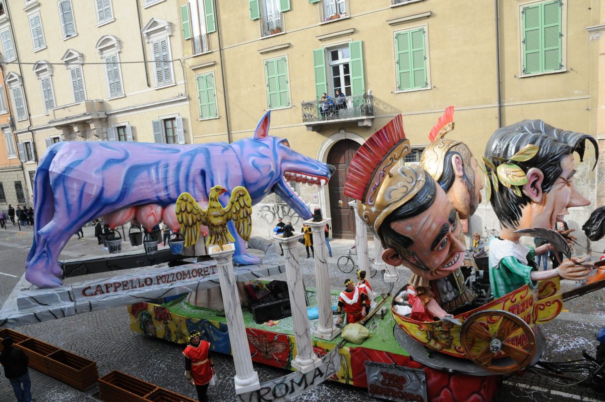 Tutti contenti, insomma, ma bastava guardare gli occhi dei bambini per capire che quello che stava scorrendo davanti ai loro volti era qualcosa di davvero coinvolgente per musica, colori e animazione. Poca banalità, tanta sostanza sia nella sfilata dei gruppi storici con le maschere veneziane a farla da padrone per la complessità dei costumi e per la splendida coreografia danzante, sia nella colorata parata dei carri allegorici, il piatto forte del pomeriggio della corte di Re Trigol. Tre i cari più apprezzati dalla gente quello ispirato all’epoca romana ed intitolato Tizio, Caio e Sempronio: una maestosa rappresentazione in cui compaiono le facce di Di Maio, Conte e Salvini su una biga e alle loro spalle una gigantesca lupa che incarna ikl popolo italiano. E poi tanti applausi anche al carro di Castel Goffredo, a quello di Volta Mantovana e ad un paio della provincia di Verona. Insomma, tutti belli, tutti coinvolgenti ed accompagnati da ballerini vesiti in tema che hanno dato alla parata quel tocco in più in fatto di bellezza e musica. Ecco, appunto, la musica: c’è chi ha protestato per il volume altissimo dei decibel, ma ad essere sinceri si è trattato di una parentesi goliardica e divertente, che aveva ragione di essere così in tutto e per tutto. Una volta l’anno si può anche sopportare o magari lasciarsi coinvolgere dal clima di vesta che si è respirato per qualche ora.