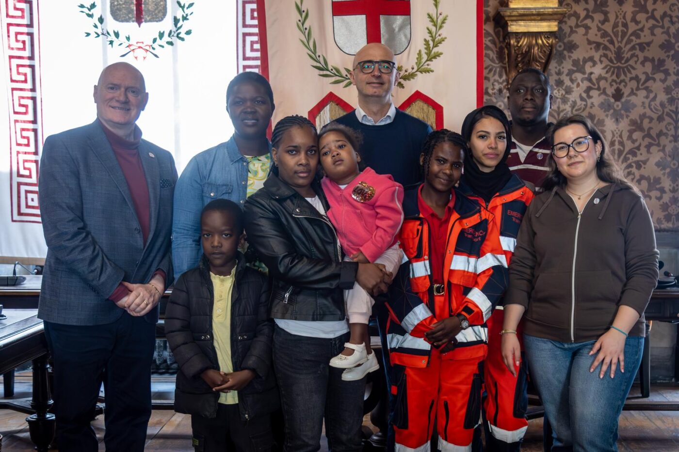 MANTOVA Due bambini ugandesi operati al cuore al Gaslini di Genova, accompagnati dalle mamme e dai volontari della organizzazione non governativa Pobic odv che opera a Bozzolo – oggi Fondazione – sono stati ricevuti nella sala consiliare del Comune di Mantova dall’assessore al Welfare Andrea Caprini. A guidare gli ospiti è stato il presidente Paolo Novellini.