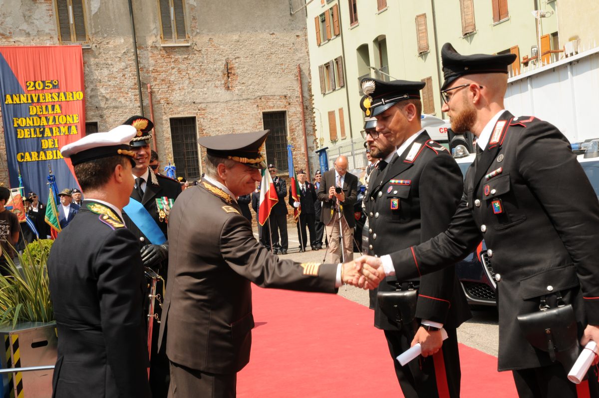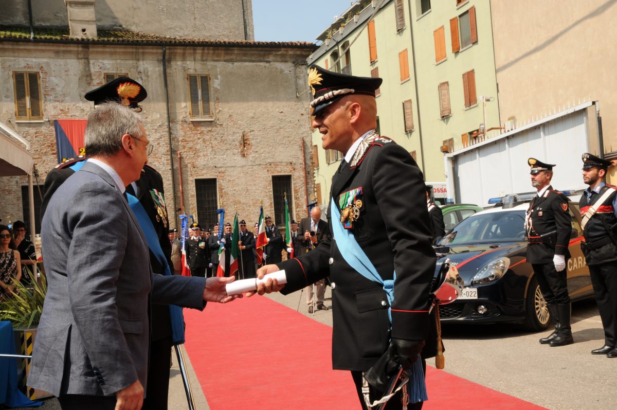 MANTOVA Un’atmosfera ovattata, ma densa di significato quella di ieri alla caserma Trotti dei carabinieri di via Chiassi per la festa dei 205 anni di storia dell’Arma. Tante le autorità politiche, civili, militari presenti unitamente ad esponenti del mondo dell’economia, del lavoro, della cultura e della stampa. All’importante cerimonia hanno partecipato diverse autorità e tanti sindaci della provincia, a testimonianza del forte legame tra l’Arma e i Comuni, in particolare, il Prefetto Carolina Bellantoni, il sindaco di Mantova, Mattia Palazzi, il presidente della Provincia Beniamino Morselli, il presidente del Tribunale, Enzo Rosina, Giulio Tamburini in rappresentanza del Procuratore della Repubblica, Manuela Fasolato, il Questore Paolo Sartori, tutti i vertici provinciali delle Forze di Polizia, alcuni parlamentari nazionali e regionali, una folta rappresentanza degli appartenenti alle Associazioni Nazionali Carabinieri ricadenti nel territorio con i labari ed i loro presidenti, numerosi familiari dei Carabinieri ed alcuni parenti di caduti. All’anniversario hanno preso parte anche molti alunni delle Scuole Medie e Superiori di Mantova accompagnati dai loro docenti e la manifestazione è stata caratterizzata da vari momenti solenni quali la lettura del messaggio del Presidente della Repubblica e del Comandante Generale dell’Arma dei Carabinieri. Il Comandante Provinciale, Col. Fabio Federici, medaglia d’argento al valor civile, nel suo tradizionale intervento ha voluto iniziare la cerimonia con un sentito omaggio, scandito dalla tromba con il silenzio fuori ordinanza, “ai tanti carabinieri che per prestare fede al loro giuramento di fedeltà alla Costituzione hanno donato la vita per il bene comune”.