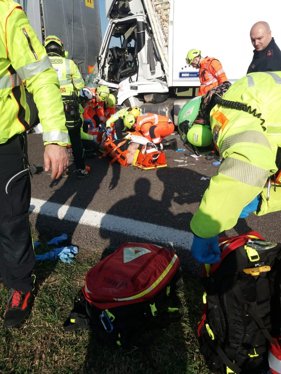MANTOVA Lunghe code sull’Autobrennero in direzione nord per un tamponamento tra mezzi pesanti avvenuto nel primo pomeriggio. Gravi le condizioni di uno dei due autotrasportatori estratto dalle lamiere dai vigili del fuoco. L’uomo è stato portato in elisoccorso all’ospedale di Brescia. Chiuso il casello di Mantova sud, le code hanno raggiunto gli otto chilometri. I disagi erano iniziati in mattinata attorno alle 10 quando un camion che viaggiava in direzione Verona, subito dopo il casello di Mantova Nord ha perso il carico di lastre di marmo. Proprio in virtù di questo incidente e della conseguente coda venutasi a creare si è verificato il grave tamponamento del pomeriggio.