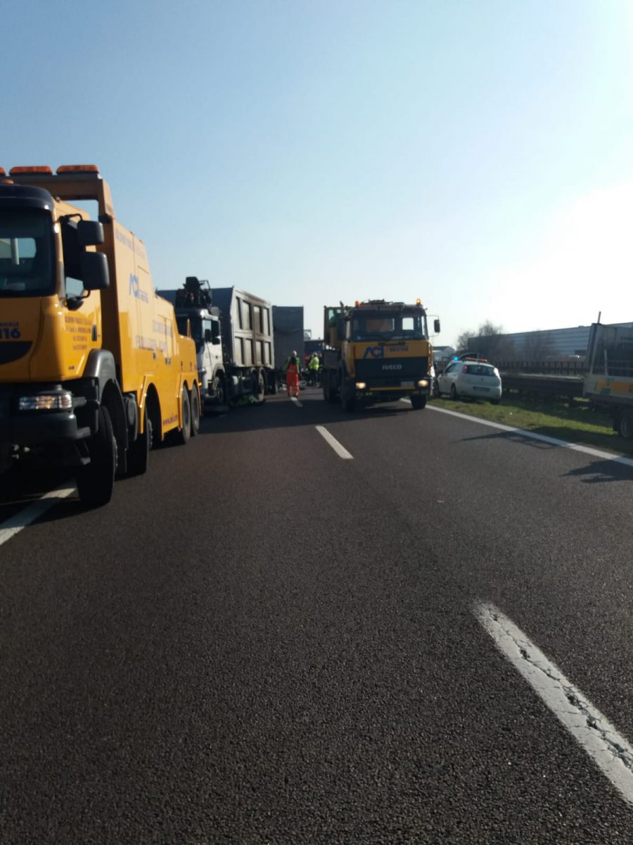 Lunghe code sull’A22 per un tamponamento tra mezzi pesanti