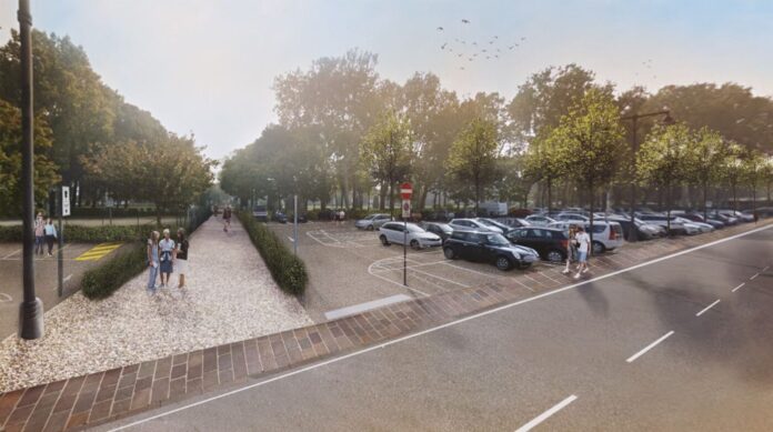 I due parcheggi esistenti verranno riqualificati con il rifacimento dello strato d’asfalto che verrà verniciato con toni neutri e caldi a ridurne l’impatto visivo e ambientale, riordinati e massimizzati nelle loro capacità con un complessivo aumento del numero di stalli. Oltre alla loro riorganizzazione, l’intervento intende mitigare tali aree rendendole stanze verdi circondate da siepi. Verranno messa a dimora anche nuove alberature ad ampia chioma, che consentiranno un riparo estivo alle auto.
