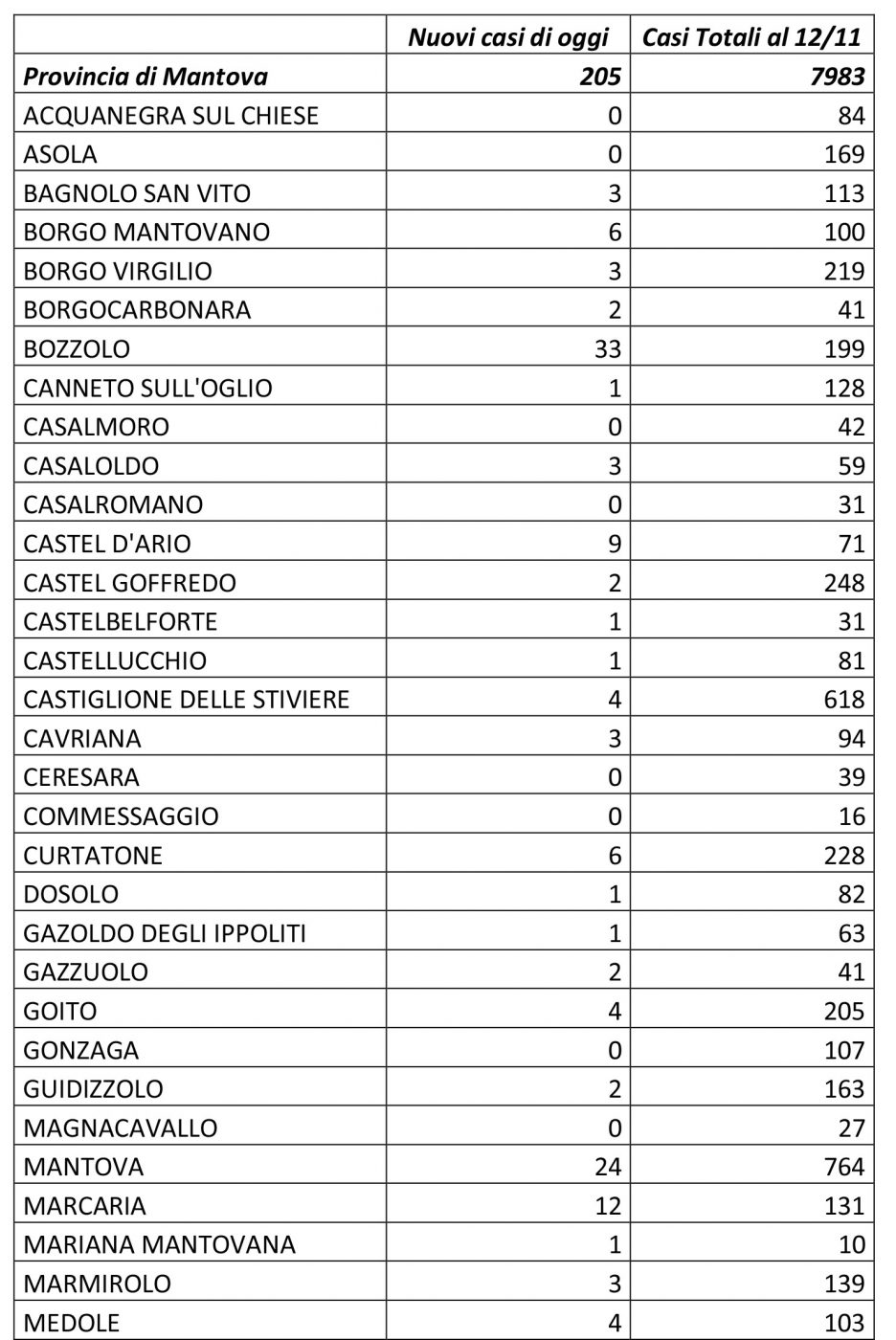 CronacaTop-Home Oltre 200 nuovi casi, 33 a Bozzolo 13 Novembre 2020 Share FacebookTwitterPinterestWhatsAppEmailTelegram