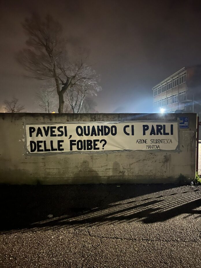 Mantova Striscioni contro la preside dell’istituto “Fermi”, la dem Marianna Pavesi, alla quale viene imputato di non avere debitamente svolto il proprio ruolo di informazione scolastica nell’occorrenza del 10 febbraio, giorno del Ricordo commemorativo delle vittime delle foibe e dell’esodo forzato degli esuli dalla ex Jugoslavia. Nella notte, esponenti della Azione studentesca, chiaramente di destra, ha appeso al murto di cinta dell’istituto lo striscione specificamente dedicato: “Pavesi, quando ci parli delle foibe?”.