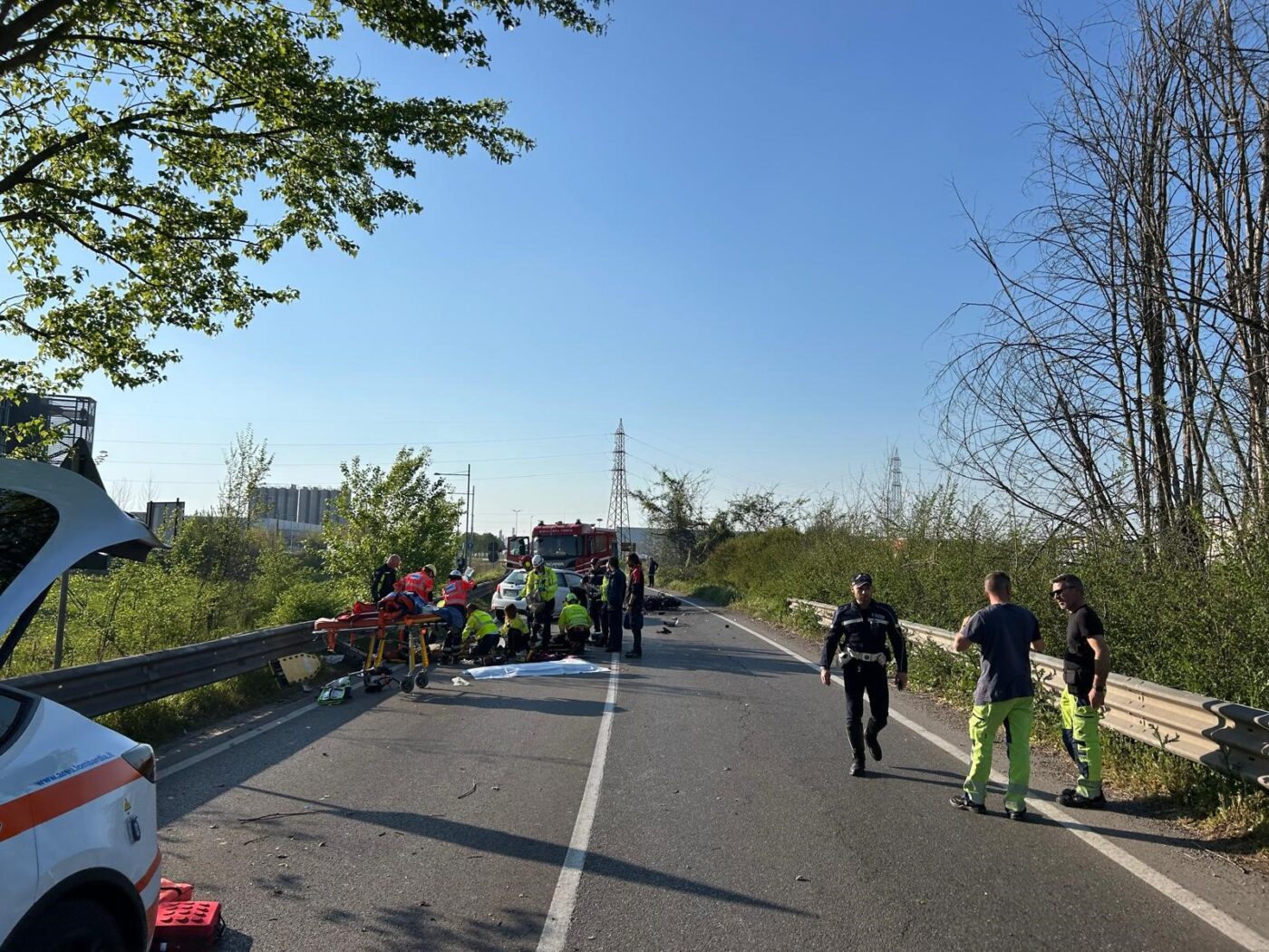 L’incidente era avvenuto ieri poco prima delle 17 quando una moto con in sella due persone si era scontrata frontalmente con una Toyota Yaris condotta da una 72enne mantovana. Ad avere la peggio nello schianto, violentissimo, il centauro alla guida della motocicletta andata poi distrutta dalle fiamme sprigionatesi a causa dell’urto. Grave anche il passeggero, un cittadino Bielorusso di 30 anni, ricoverato in codice rosso all’ospedale Carlo Poma. Sotto shock invece la donna al volante della vettura, anch’essa trasportata al nosocomio cittadino. Le sue condizioni per fortuna non destano particolare preoccupazione. Sul posto le ambulanze di Croce Verde e Soccorso Azzurro, due auto mediche oltre all’elicottero del 118 proveniente da Verona. Impegnata nei rilievi e la regolamentazione del traffico la Polizia Locale di Mantova, intervenuta assieme ai vigili del fuoco con quest’ultimi che hanno provveduto a domare le fiamme che in breve hanno avvolto completamente la moto.