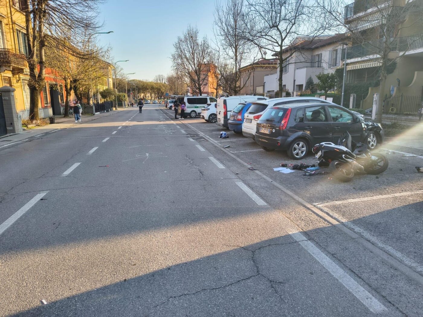 MANTOVA Incidente stradale ieri pomeriggio in viale Pompilio. Erano circa le 16.30 quando, nel tratto compreso tra il cavalcavia e via Albertoni, un giovane in sella a uno scooter è finito per scontrarsi con una Ford Focus, proveniente dalla direzione opposta, che stava svoltando a sinistra in un passo carraio. L’auto, condotta da una donna di 31 anni, si è subito fermata per prestare soccorso. Il ciclomotorista, sbalzato a circa quindici metri di distanza dal luogo dell’impatto, è così andato a sbattere contro un furgone in sosta e riportando lesioni importanti a una gamba. Sul posto l’automedica del 118 e un’ambulanza della Croce Verde. Il 27enne è stato subito trasferito al pronto soccorso del Carlo Poma in codice giallo. Illesa la conducente della vettura. In viale Pompilio sono intervenuti anche gli agenti della Polizia Locale per i rilievi di legge e per regolamentare la viabilità.