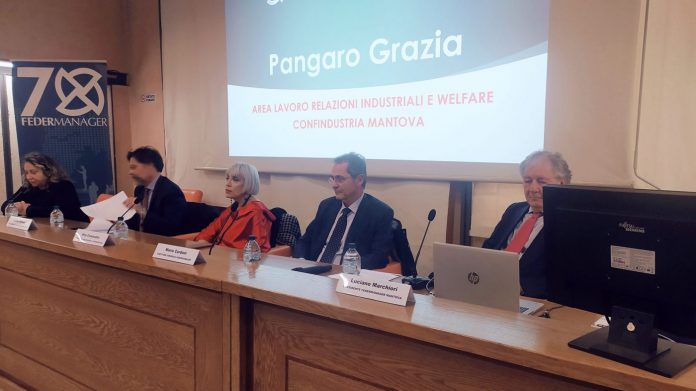 MANTOVA – Significativa giornata di studio e approfondimento di temi legati alla previdenza, proposta ieri nella sede di Confindustria Mantova dai dirigenti locali di Federmaneger che disponevano del pieno e convinto sostegno anche da Federmaneger nazionale. Un momento di confronto dal titolo “Previdenza: il futuro è nelle tue mani – pianifica la tua pensione con Federmanager” che ha visto la partecipazione di vari professionisti che operano sul territorio mantovano. Al tavolo dei relatori, oltre al presidente provinciale Luciano Marchiori, che era affiancato in sala dal vice Rodolfo Bellintani e dall’esperto della materia Mario Mora, vi erano: Grazia Pangaro dell’Area Lavoro, Relazioni industriali e Welfare di Confindustria Mantova; Andrea Bohuny direttore provinciale Inps Mantova; Mario Cardoni, direttore generale di Federmanager; Rita Comandini, Consulente Previdenziale Federmanager e in collegamento online, Alessandro Rasetta, Responsabile Aidp Brescia e Mantova.