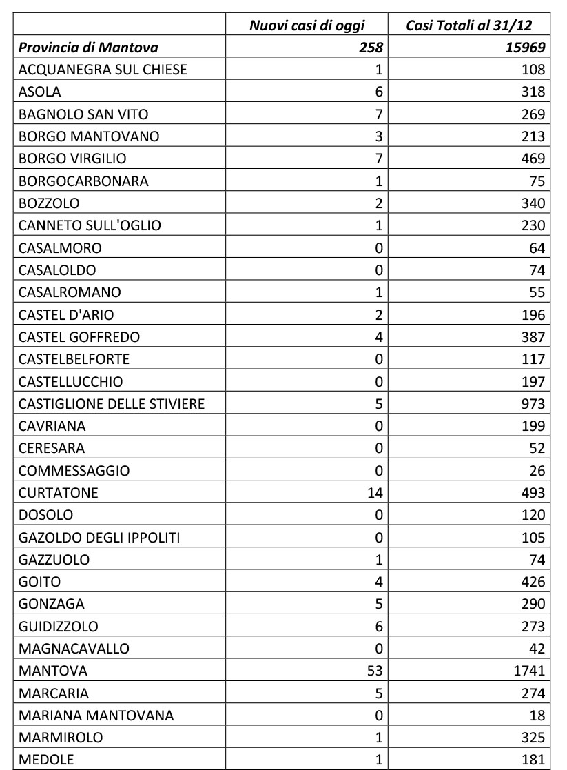 CronacaTop-Home Sono 258 i nuovi contagi 1 Gennaio 2021 Share FacebookTwitterPinterestWhatsAppEmailTelegram