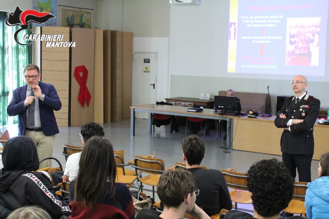A guidare l’incontro sono stati il Capitano Giovanni Vignola, comandante del Nucleo Operativo e Radiomobile della Compagnia Carabinieri di Mantova, insieme ai Luogotenenti Luca Rizzello e Giuseppe Turra del Nucleo Antisofisticazioni e Sanità (NAS) di Cremona. Un parterre di relatori altamente qualificati che ha saputo coinvolgere attivamente gli studenti, stimolando riflessioni e domande.