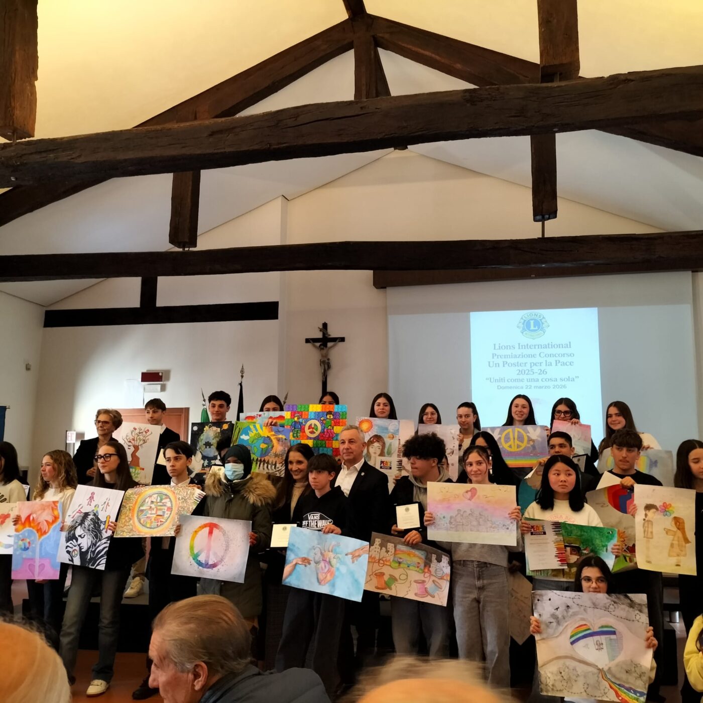 I premi sono stati consegnati alla presenza del governatore del distretto Lions 108 Ib2, Daniela Rossi, e del primo vice governatore Christian Manfredi. La giuria, composta da Ferdinando Capisani, Francesca Miserocchi e Roberto Pedrazzoli, ha designato come vincitore il lavoro di Sharah Hossain, studentessa dell’Istituto comprensivo Margherita Hack di Suzzara, che ha raffigurato tante persone che si riuniscono a formare un simbolo della pace con i colori dell’iride. Premi sono andati ai migliori elaborati di altre due aree della provincia corrispondenti alle zone in cui sono suddivisi i club Lions: sono stati chiamati sul palco Matilda Zoccoli di Gazoldo degli Ippoliti e Riccardo D’Addario di Roncoferraro. Menzione d’onore per la tecnica a Matteo Russo della Bertazzolo di Mantova e a Edoardo Cortigiani di Gonzaga. Riconoscimenti sono andati anche ai tre migliori lavori per ciascun istituto partecipante: Borgoforte, Borgo Virgilio, Bozzolo, Campitello, Castelbelforte, Castel d’Ario, Castellucchio, Ceresara, Gazoldo degli Ippoliti, Gazzuolo, Gonzaga, Mantova Bertazzolo, Moglia, Ostiglia, Pegognaga, Piubega, Porto Mantovano, Revere, Rivarolo Mantovano, Rodigo, Roncoferraro, Roverbella, Sabbioneta, San Giacomo delle Segnate, Sustinente, Suzzara Margherita Hack, Viadana Parazzi e Villimpenta.