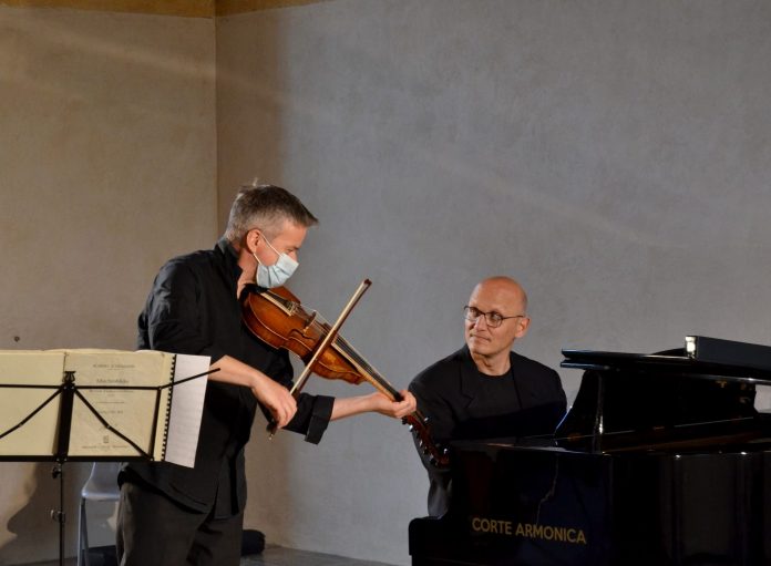 MANTOVA – La serie “Educational” di MantovaMusica ha regalato al pubblico presente domenica nella splendida Sala dei Cavalli di Palazzo Te una preziosa opportunità per apprezzare bellissime pagine di musica grazie alle indubbie qualità degli interpreti, ma anche per la proposta dei preziosi approfondimenti relativi alle opere in programma e la piacevole scoperta di uno strumento storico, la viola d’amore, oggi raramente presente nelle sale da concerto. Grande merito di tutto ciò va riconosciuto a Simonide Braconi, prima viola solista dell’Orchestra del Teatro alla Scala, ed Andrea Dindo, raffinato pianista e camerista di fama internazionale, che hanno proposto un interessante programma costituito dall’alternanza tra brani del repertorio romantico e pagine moderne, confermandosi eccellenti interpreti. Certamente interessante si è rivelato l’utilizzo da parte di Simonide Braconi della viola d’amore, strumento antico, in gran voga in epoca barocca, che esprime una sonorità particolarissima dovuta alla duplice serie di sette corde, una delle quali tesa sotto il manico con funzione di libera risonanza dei suoni articolati sulla tastiera.