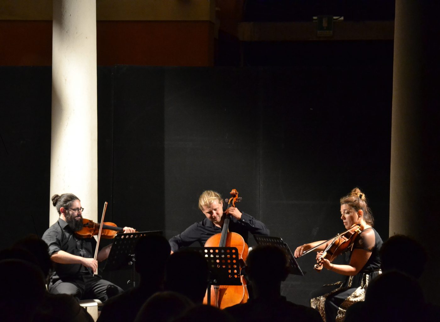 MANTOVA – Una serie di piccoli passi per un viaggio ad ampio raggio è la proposta musicale con cui il Trio Quodlibet è stato protagonista del concerto di lunedì sera nel cortile del Centro Culturale “Baratta” per il quarto evento della rassegna Extra_classico. Con il titolo “Ancestral. Playlist dal mondo”, il progetto della formazione composta da Vittorio Sebeglia (violino), Virginia Luca (viola) e Fabio Fausone (violoncello) ha delineato un percorso avvincente attraverso i linguaggi espressivi di compositori classici di varia estrazione culturale mettendo in luce, oltre alle differenze d’accento, la coincidente capacità comunicativa e descrittiva di immagini e sentimenti. Aperto e chiuso da due frammenti di Erik Satie, l’eterea atmosfera di Ogives I e IV a determinare una forma di ciclicità, l’itinerario ha offerto un variegato assaggio di spunti per una possibile scaletta d’ascolto più estesa. Tra questi scorci su contesti e repertori molto diversi, prezioso e toccante è stato l’approccio al Trio per archi in unico movimento di Gideon Klein, scritto da nel 1944 nel ghetto di Terezín poco prima della sua tragica deportazione ad Auschwitz, a cui ha fatto seguito la trascrizione di Andrea Damiano Cotti del Tema con variazioni dal Mosè in Egitto di Nicolò Paganini. Brano alimentato da affabile cantabilità e tratti virtuosistici abilmente interpretati dai tre musicisti, altrettanto apprezzati nella definizione delle linee di dialogo del successivo primo movimento del Triosatz D 471 di Franz Schubert. Cambio totale di visione con il passaggio al sanguigno linguaggio di Astor Pazzolla, particolarmente ispirato e coinvolgente nelle bellissime note di Oblivion, un successivo rimbalzo tra le sponde dell’Atlantico con la densa emotività del Trio in sol min. di Jean Sibelius e il fascino coloristico del secondo tempo del Trio W460 di Heitor Vlla Lobos, per approdare all’incisivo brio giovanile del Minuetto dal Trio per archi in mi bem. Magg. op. 3 di Ludwig van Beethoven e all’epilogo con Satie. Meritata la calorosa approvazione che ha accompagnato la brillante prova del Trio Quodlibet, ensemble giovane ma che ha già al suo attivo importanti affermazioni e una solida base di formazione, impreziosita dall’apprezzata ripresa fuori programma di Oblivion. Un chiaro successo per i tre protagonisti e per questo penultimo appuntamento della rassegna Extra_classico di Oficina Ocm che si conclude venerdì 22 agosto, ancora al Centro Baratta, con il Concerto n. 1 di F. Chopin nell’interpretazione del pianista Luigi Carroccia e dell’Ensemble dell’Orchestra da Camera di Mantova.