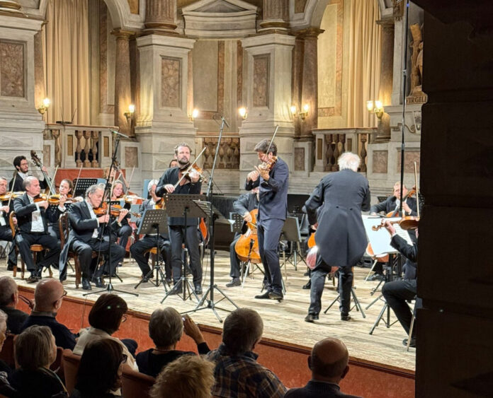 Un gioco. Di sguardi, di pungenti sottesi, di una complicità alata che nessuna prova può confezionare e che solo l’incontro tra spiriti eletti assicura. Lo scorso lunedì 2 febbraio, mentre fuori infuriava una pioggia battente, il Teatro Bibiena si raccoglieva attorno alla classe sopraffina di Ilya Gingolts e Lawrence Power per una serata che è già consegnata ai memorabilia del pluridecennale forziere di Tempo d’Orchestra. L’uno e l’altro di casa qui a Mantova, già più volte protagonisti di indimenticati momenti di musica nelle folles journées di Trame Sonore ed ora approdati, insieme, in Stagione, per un dialogo che vedeva, sul leggio, il monumento della Sinfonia Concertante in Mi bemolle maggiore K 364. Creatura solitaria, nata negli anni dolorosi e cruciali che vedono l’ex enfant prodige affacciarsi all’età adulta, fare i conti con le sue durezze, con un amore non corrisposto, con la morte della madre, con le porte sbattute di un mondo non ancora pronto per accoglierne il genio visionario. Qui, nei tre movimenti che ne costituiscono la scansione, l’inquietudine e l’amarezza sembrano trovare il temporaneo conforto di un’oasi di pace, il porto sicuro in cui improvvisare una malcerta tregua; e, nonostante il numero di catalogo ne tradisca l’appartenenza a quella che, nella bruciante parabola esistenziale di un uomo morto a nemmeno trentasei anni, può essere definita l’età di mezzo, in essa l’ascoltatore trova, disseminati, indizi, schegge, intuizioni che solo nelle opere estreme vedranno pieno compimento. La lettura di questo capolavoro consegnata all’uditorio dai due interpreti ne attraversava con cristallina naturalezza le olimpiche geometrie, esaltando la luce diurna, maestosa, del primo movimento, levigando con trepidante adesione la meditativa melanconia del secondo – una pagina intrisa di crepuscolo, di pacata disillusione ma anche di quella palpabile consolazione che il dialogo con una voce amica assicura -, tuffandosi con chirurgico vitalismo nel bizzoso slancio del Rondò finale, in cui i rispettivi archetti disegnavano arabeschi di spettacolare fattura. Attorno al loro magistero fatto di sottrazione, di immaginifico garbo, di quella narrazione mai ostentata ma, anzi, sgorgante dall’urgenza del dire, un dire che si impone senza artifici, con poco vibrato, nella purezza adamantina del suo affacciarsi, un’OCM in gran spolvero. La conduzione sorvegliata e sempre plastica di Friedrich Haider, in perfetta assonanza con la visione dei solisti, era uno scandaglio che, più della smaltata superficie, esaltava il ricco tessuto delle tinte di mezzo, delle voci affioranti dall’arazzo degli archi, chiamate a contrappuntarne l’oro con l’intimo, vivido presagio dei fiati, la brulicante ricchezza di una scrittura che la scelta di privilegiare pesi sonori più intimi, più interiorizzati, faceva emergere in tutta la sua densità. Una lettura di esemplare, partecipata sobrietà in cui era il sapiente gusto nell’intessere un dialogo mai di circostanza ma, anzi, teso, procedente per rivelazioni, nel sopraffino passamano di fraseggi che disegnavano curvature sorprendenti, a testimoniare, dote rara, la capacità della rinuncia, del fare posto all’altro, del camerismo più autentico che fa di Gringolts e di Power due musicisti che qui diventavano uno solo e, al tempo stesso, mozartianamente infiniti. Nella seconda parte del concerto, Mozart sfociava, quasi per naturale conseguenza, nell’esaltante Quarta Sinfonia di Mendelssohn, l’“Italiana”, tripudio di scalpitante ebbrezza che Haider imbrigliava accuratamente in un vitalismo arioso, respirato, mai muscolare, assecondandone le audaci punteggiature delle accentazioni, l’aereo folleggiare che nel suo gesto trovava sempre l’avvolgenza di un canto spiegato, l’articolazione di una pronuncia nitida, in questo intimamente mozartiana, che dava sbalzo ai fugati, alle articolate trame, alla fantasioso irradiarsi delle linee. Magnifico, sornione, vagamente avvolto da una nebbia che ne rallentava, senza spegnerlo, il passo, era l’Andante con moto, a cui facevano seguito gli echi di bosco, nei corni persi in lontananza, del terzo movimento, perfetto contrappeso tra l’amabile esuberanza del pannello iniziale e al rutilante precipitare del Saltarello conclusivo, in cui, sapendo bene di rischiare l’osso del collo, direttore e strumentisti si tuffavano a perdifiato, in un gioioso, ossessivo turbine di danza, di pathos, di bellezza.