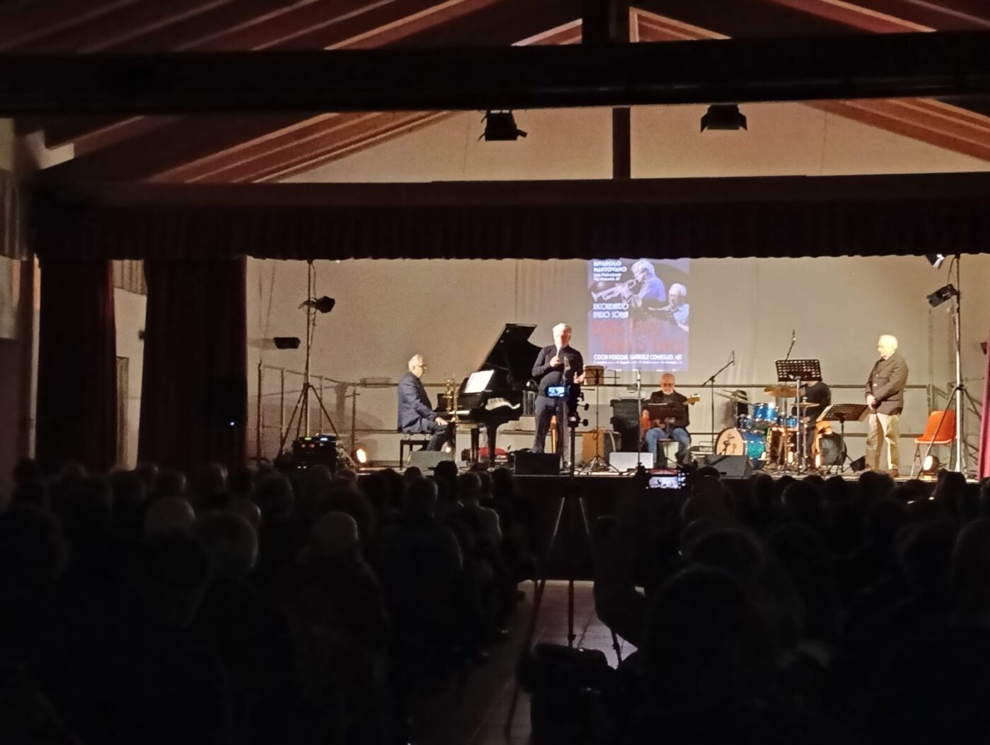 RIVAROLO Una manciata di note, racchiuse in un assolo di vertiginosa, struggente bellezza. Quel suono parlante, capace di addomesticare il più capriccioso degli ottoni e di plasmarlo in pura poesia. Da lassù, dalle stelle, lo scorso venerdì 13 gennaio, il messaggio in bottiglia di Emilio Soana, ad un anno esatto dall’improvvisa scomparsa, planava lieve, magnifico, su una Sala Polivalente che più gremita non avrebbe potuto essere. Ed il tempo si fermava, sospeso, nell’incanto di quel Mona Lisa dipinto al Blue Note con la Nick The Nightfly orchestra. Facile cedere alla commozione, alla nostalgia per quell’uomo semplice che, con la tromba in mano, diventava un gigante. Dopo aver suonato con lui a Milano, Bob Mintzer, di ritorno a New York, aveva voluto aggiornare il suo profilo web, scrivendo di aver avuto il privilegio di aver collaborato con uno dei rari casi di prima tromba e di superbo solista racchiusi nello stesso interprete. Fantasista scapricciato e lucido regista del racconto musicale, centometrista e maratoneta, Soana ha scritto, nella discrezione che lo caratterizzava, la storia di oltre mezzo secolo di jazz, donandosi fino al suo ultimo giorno, con la generosità spericolata e umile di un eterno principiante. A ricordarlo, in occasione di una serata che chiudeva il Festival d’inverno di Terre d’acqua, alcuni degli amici di sempre, sodali di chissà quante scorribande musicali, complici di un racconto che li vedeva non solo protagonisti ma ancor prima entusiasti spettatori di ciò che ogni volta accadeva in scena. Con ostinata passione, Stefano Alquati e l’intera Fondazione Sanguanini Onlus – in collaborazione con Comune di Rivarolo Mantovano, Pro Loco, Fondazione Comunità Mantovana Onlus, Festival Terre d’acqua e BCC di Rivarolo Mantovano – hanno voluto ricordare Emilio con un tributo che a lui sarebbe sicuramente piaciuto. Senza retorica, senza lacrime. Così, l’omaggio al genio di Charlie Parker, nato nel 1925, è diventato il pretesto per salutare Emilio, morto esattamente un secolo dopo, chiamando sul palco Marco Angeleri, Gabriele Comeglio, Marco Espisito e Federico Monti. Basterebbero i nomi a dare la caratura della serata, la sua temperatura da subito incandescente, accesa dal graffio del sax alto di Comeglio, perfettamente a proprio agio nel ripercorrere le rotte del più visionario di tutti, una sorta di Mozart del jazz, scomparso a soli 34, stroncato da una vita bruciata tra eccessi di ogni genere e la musica come sola oasi di pace. Basterebbe citare la preziosa aggiunta della voce di Cochi Ponzoni, monumento assoluto del teatro e del cinema italiano, chiamato a dare parole e colore al nastro di melodie che hanno costellato il percorso narrativo della serata, scandito dalle tappe della biografia di Parker. E l’alchimia, sempre uguale, sempre diversa, che musicisti di razza sanno ricreare dal nulla, dando suono al vento, danzando – nel segno dell’inarrivabile Bird – sul calco di un giro armonico, inseguendo acrobazie da funamboli nel sottile, sempre pericoloso incastro di un dialogo serrato e volatile. La miccia irresistibile di Comeglio, capace di sorprendere ad ogni pagina; il pianoforte elegante di Angeleri, il suo modo essenziale e avvolgente di catturare e restituire la luce sonora, il basso di Esposito, un’arte della sottrazione, la sua, fatta di tessitura e di rammendo, di sapiente essenzialità, e la batteria di Monti, felpata, sorvegliatissima, fino a sciogliersi in puro, travolgente magma, nel conclusivo My little suede shoes. Davanti agli occhi della signora Silvana, in prima fila, e delle figlie, la tromba di Soana ascoltava in silenzio, appesa allo stand, in scena. Protagonista muta di un concerto in cui era in ogni nota. Gioiosa, naturale, eternamente viva. Bird lives! Emilio lives!