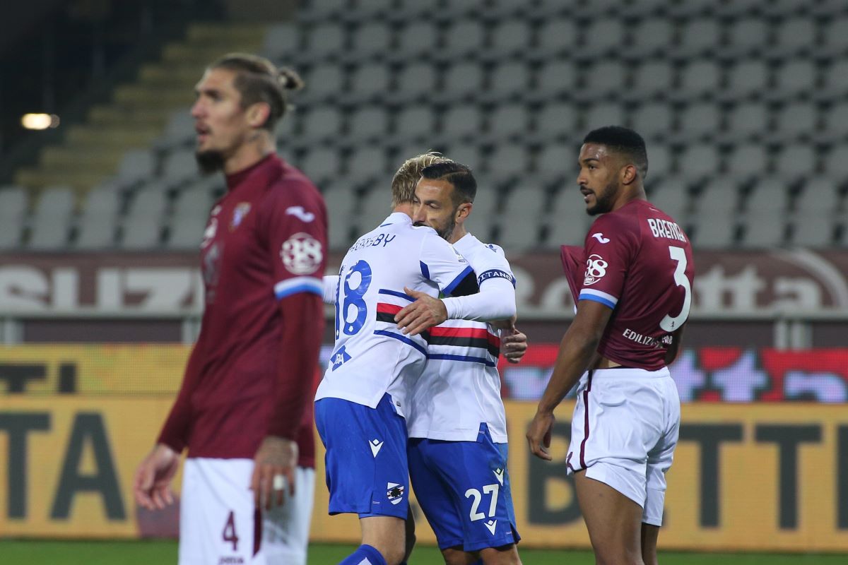 TORINO (ITALPRESS) – La 99esima rete in 200 presenze di Andrea Belotti non basta al Torino per tornare alla vittoria casalinga dopo un digiuno di sei turni e per lasciarsi alle spalle un avvio di stagione mai così negativo dall’anno dell’ultima retrocessione. All’Olimpico la squadra granata non va oltre il 2-2 contro una Sampdoria che si affida all’esperienza di Quagliarella e Candreva per salire a quota undici punti in classifica. Con Giampaolo (in isolamento) e Ranieri (squalificato) assenti, ci sono i vice Conti e Benetti in panchina con poche novità di formazione. La fluidità d’attacco del Torino sembra funzionare e al 7′ Belotti va in gol ma il guardialinee annulla per un fuorigioco dell’azzurro. Ma la rete del vantaggio è solo rinviata al 25′: Singo si scatena sulla fascia sfruttando l’indecisione di Augello e crossa al centro per Belotti che in spaccata fa 1-0. La prima reazione della Sampdoria si registra solamente al 37′: Quagliarella taglia e fa da sponda per Candreva il cui tiro è murato da Bremer. Cinque minuti dopo c’è sempre Quagliarella protagonista: dalla destra Linetty crossa al centro, l’ex di turno è solo in area ma stacca col tempo sbagliato e di testa conclude alto. All’intervallo Ranieri si gioca subito quattro cambi: bocciature per Verre, Yoshida, Jankto ed Ekdal, dentro Damsgaard, Gabbiadini, Tonelli e Adrien Silva con passaggio al 4-4-2. E la scossa blucerchiata è immediata. Al 54′ Rincon contende un pallone a Quagliarella e serve un assist involontario a Candreva che beffa Sirigu con un tiro sotto le gambe del portiere azzurro, al 63′ si invertono gli interpreti con l’ex Inter nella veste di uomo assist e Quagliarella letale in area con un destro al volo per il 2-1 blucerchiato. La reazione del Toro è affidata all’orgoglio e alla potenza di Meitè che corona una grande prestazione con uno stacco aereo da calcio d’angolo che vale il 2-2 definitivo.