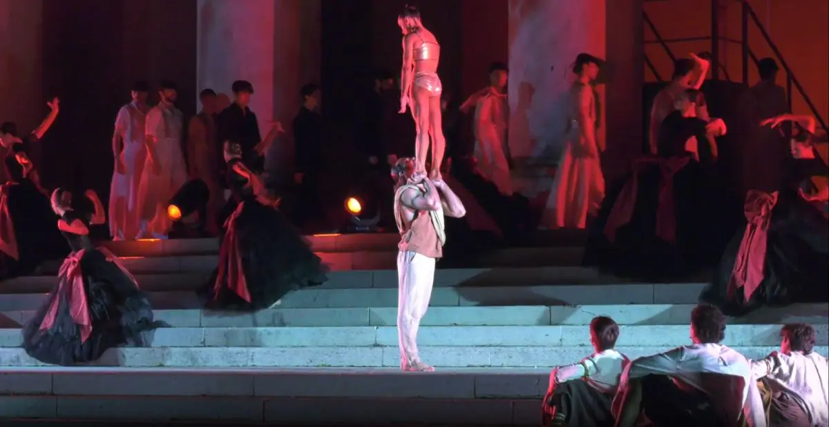 L’arte del vino italiano celebrata in una grande performance artistica di danza, canto e musica. “Dentro c’è l’Italia” è lo spettacolo ideato e messo in scena da Giuliano Peparini e realizzato dalla Fondazione Inda, promosso da Veronafiere con OpportunItaly e il patrocinio del Ministero dell’agricoltura, della sovranità alimentare e delle foreste. Un evento che ha richiamato centinaia di persone in piazza Bra a Verona, alla vigilia della inaugurazione del 58° Vinitaly.