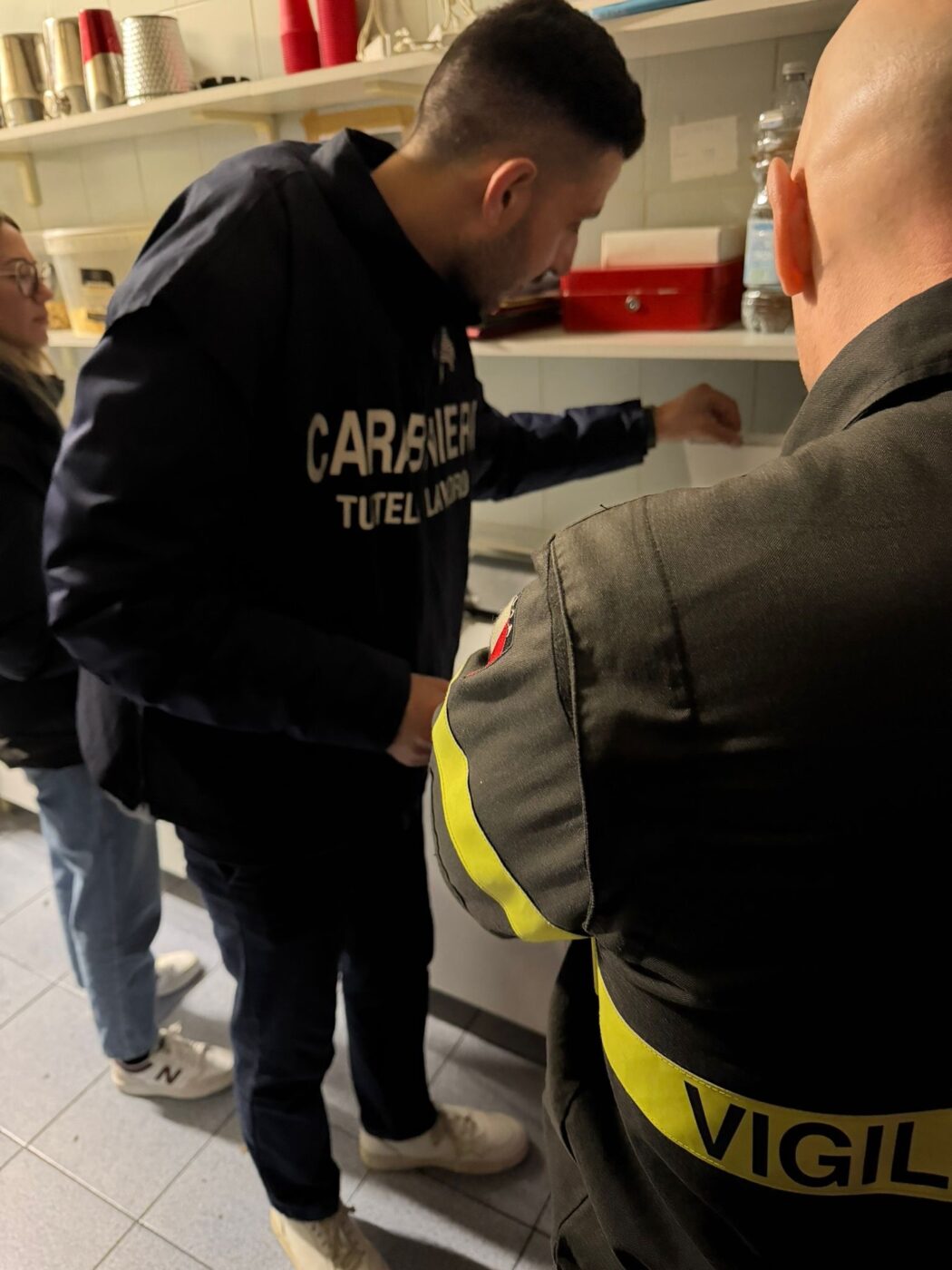In materia di sicurezza sui luoghi di lavoro sono state riscontrate gravi carenze strutturali e documentali, rilevando la non conformità del locale per le uscite di emergenza bloccate, i maniglioni antipanico delle porte di emergenza non certificati e privi di manutenzione, l’assenza della dichiarazione di conformità dell’impianto elettrico e della messa a terra, l’assenza del registro dei controlli ai presidi antincendio, l’omessa presentazione della SCIA antincendio, la mancata redazione del DRV (documento valutazione rischi), la mancata nomina del responsabile servizio prevenzione e protezione, mancanza del piano di emergenza ed evacuazione, l’assenza della cassetta di primo soccorso e la mancanza della dichiarazione di idoneità per i carichi sospesi.
