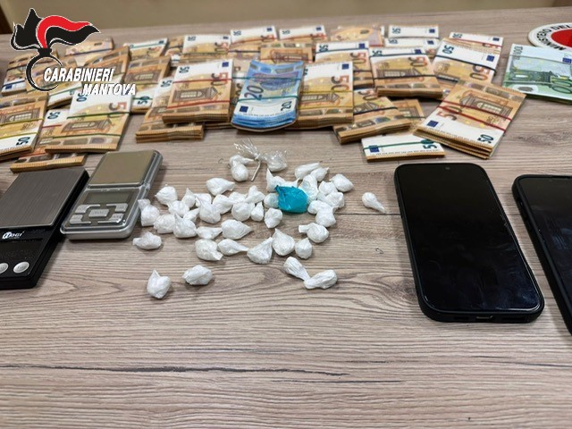 Il giovane risiede a Mantova ma era spesso presente nel territorio del Comune dell’hinterland: una presenza sospetta tanto che i carabinieri della stazione di Castellucchio ne monitoravano da tempo la presenza in paese. Nella serata di mercoledì i militari lo hIl fiuto investigativo dei militari lo hanno aspettato al varco: prima pedinandolo a distanza e seguendolo; e quando ha estratto dalle tasche dei pantaloni un involucro e lo ha poi consegnato ad un 42enne, ricevendo in cambio del denaro, hanno capito che dovevano intervenire. I due soggetti sono stati fermati e controllati: il 35enne è stato trovato in possesso di numerose dosi cocaina e di 500 euro, mentre l’acquirente è stato trovato con mezzo grammo di cocaina appena acquistata e segnalato come assuntore abituale di stupefacenti. Per il 35enne invece si sono aperte le porte della caserma ma anche quelle della sua abitazione: e in essa, dopo un’accurata perquisizione, i carabinieri hanno rinvenuto altre dosi di cocaina, denaro contante per complessivi euro 40.740, materiale per il taglio e la pesatura.