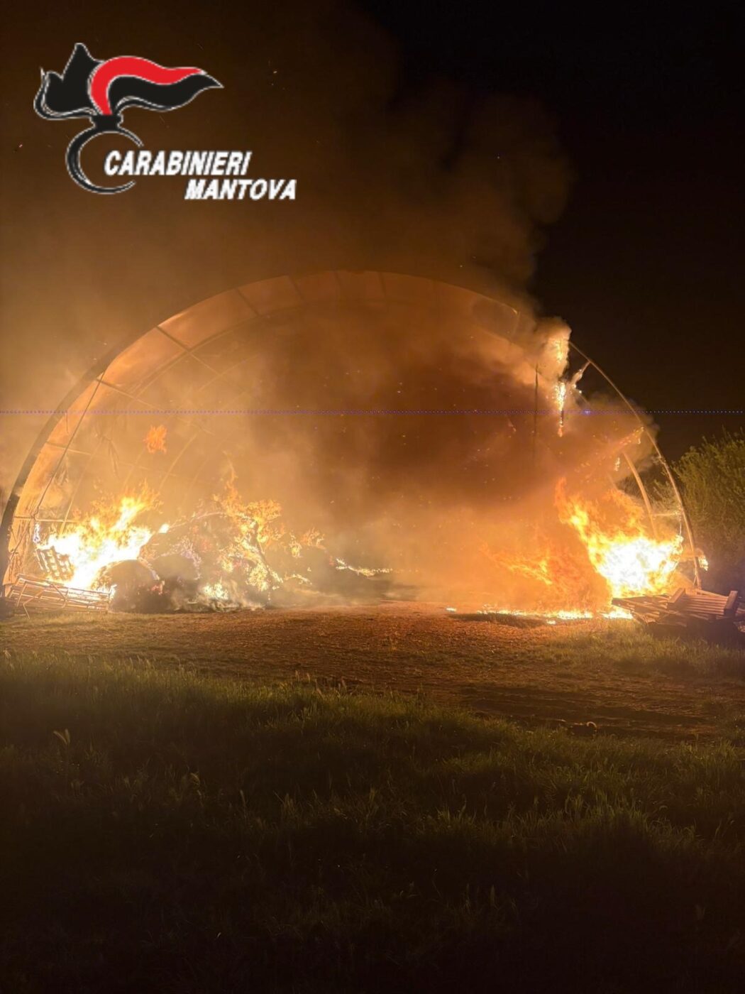 GONZAGA Poco dopo la mezzanotte odierna, in Gonzaga, strada provinciale Brigate Garibaldine, per cause in corso di accertamento prendeva fuoco un fienile dell’azienda agricola “Garimberti”. Sul posto i Vigili del Fuoco di Suzzara e Mantova, nonché i Carabinieri del Nucleo Operativo e Radiomobile della Compagnia di Gonzaga. La struttura è stata dichiarata inagibile. Sono in corso accertamenti per stabilire la natura dell’incendio di circa 20 rotoballe fi fieno.