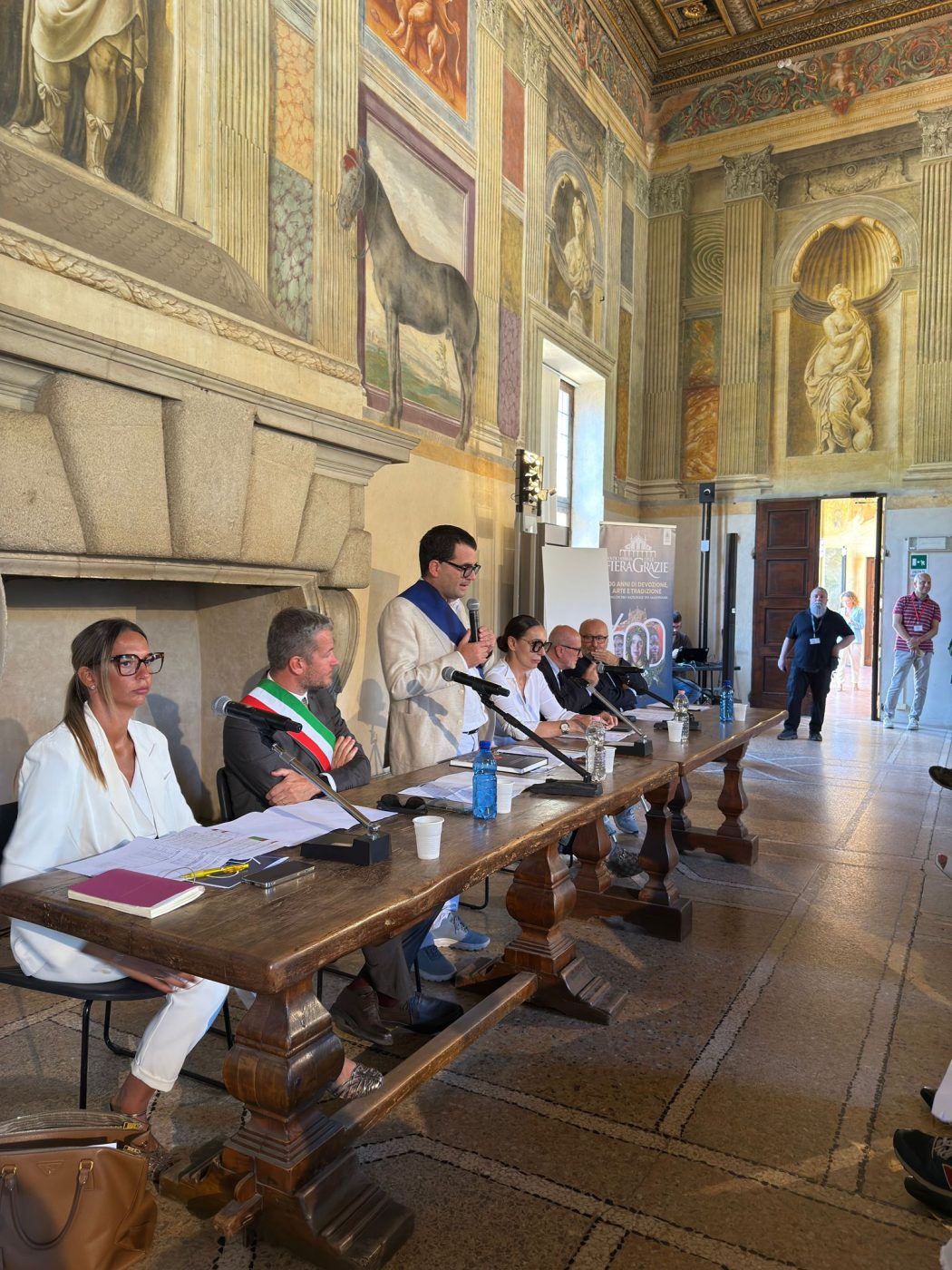 GRAZIE (Curtatone) –  Una tradizione secolare che si rinnova. La 600ª edizione dell’Antichissima Fiera delle Grazie è stata presentata la settimana scorsa nella Sala dei Cavalli di Palazzo Te, alla presenza del sindaco di Curtatone e presidente della Provincia Carlo Bottani, del vicesindaco Federico Longhi, dell’assessore regionale al Turismo Barbara Mazzali, dell’assessore alle attività produttive Sofia Pantani, di Italo Scaietta, presidente del “World Federation of Friends of Museum”, e del giornalista Fabrizio Binacchi. «Un crocevia di devozione e tradizione, la dimostrazione concreta di come la storia possa dialogare con il presente, mantenendo intatto il suo valore di legame e condivisione – ha dichiarato Bottani -. Un evento che rende omaggio alla Madonna e alla storia della nostra comunità. Quest’anno ci attendiamo oltre 100mila presenze, grazie a una macchina organizzativa solida e al sostegno della Regione». Dal 14 al 17 agosto, il borgo di Grazie di Curtatone offrirà un ricco programma di eventi religiosi, culturali e popolari. Fulcro della manifestazione sarà il 51° Incontro Nazionale dei Madonnari, con 118 artisti da tutto il mondo. Non mancheranno rievocazioni storiche, concerti, incontri con autori e spazi dedicati alle famiglie. Barbara Mazzali ha sottolineato il ruolo della Fiera nel turismo lombardo. «Questa manifestazione è il cuore pulsante di un turismo spirituale e sostenibile – ha precisato Mazzali –. Regione Lombardia sostiene l’evento con 238mila euro tramite il Bando Cultura 2025». Il vicesindaco Longhi ha ricordato l’evoluzione del ricco programma dell’appuntamento: «Negli ultimi anni abbiamo investito molto per valorizzare l’aspetto artistico della Fiera, promuovendo e valorizzando il talento dei Madonnari che rendono unico questo evento. Crediamo che questo patrimonio popolare debba crescere e rinnovarsi, lasciando tracce nella storia del Borgo e dell’incontro dei Madonnari – ha precisato –. Vogliamo che questi giorni di agosto continuino ad essere davvero la fiera di tutti: un luogo dove cultura, arte e convivialità si fondono in un patrimonio condiviso e vivo, capace di durare nel tempo». Per Sofia Pantani, «questa edizione è anche fortemente commerciale, con 140 espositori e 45 sponsor. Una sinergia pubblico-privato che è garanzia di successo». Il programma sarà anticipato il 13 agosto (ore 21) con il “Magnificat” di Vivaldi diretto dal maestro Anselmi. La mattina del 14 agosto, dopo la benedizione dei gessetti, si entrerà nel vivo con la “Notte dei Madonnari”. Tra gli appuntamenti: Rosario mariano, Premio Fior di Loto a Mariastella Gelmini (15 agosto), concerti jazz e pop, “Marcia delle Grazie” e spettacolo piromusicale.