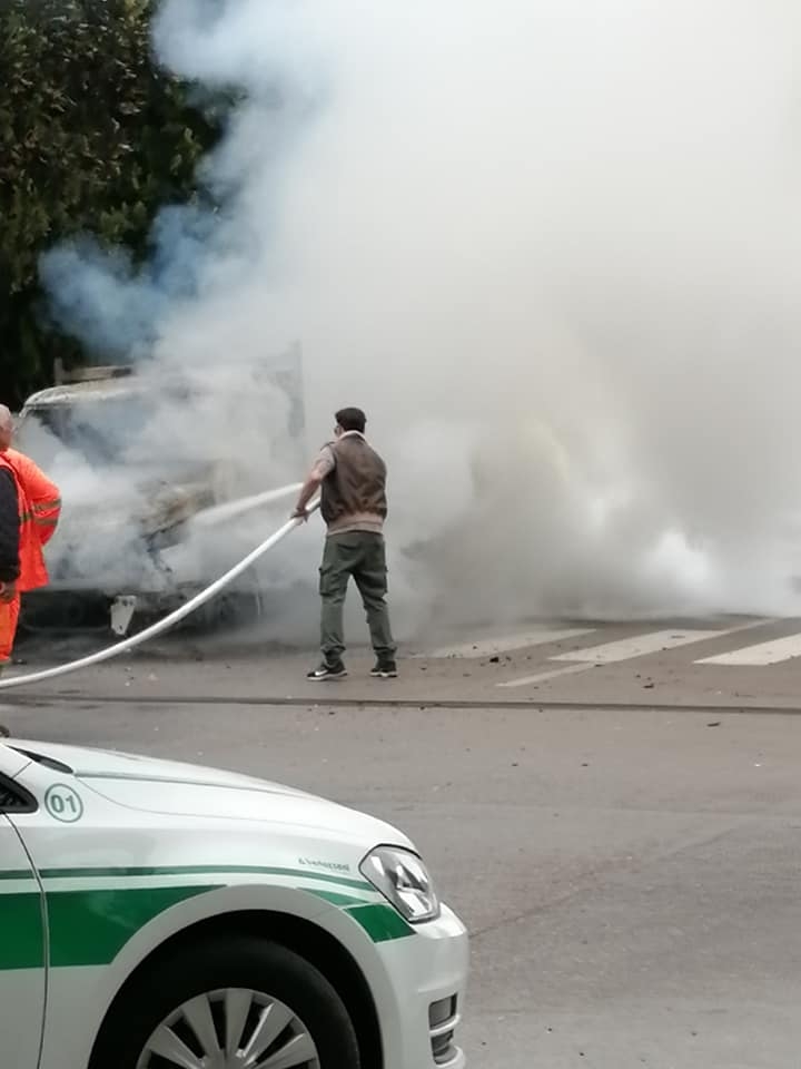 SAN BENEDETTO PO Un furgone degli addetti alla manutenzione delle strade ha preso fuoco per un corto circuito questa mattina in centro a San Benedetto Po. A domare le fiamme un vigile del fuoco fuori servizio, che con grande prontezza di riflessi e acume ha prima messo in sicurezza la zona e poi ha usato la tubazione del vicino istituto scolastico per spegnere le fiamme. Quando sul posto sono arrivati i colleghi a loro non è rimasto altro che finire il lavoro. Nessun ferito, solo qualche disagio alla circolazione.