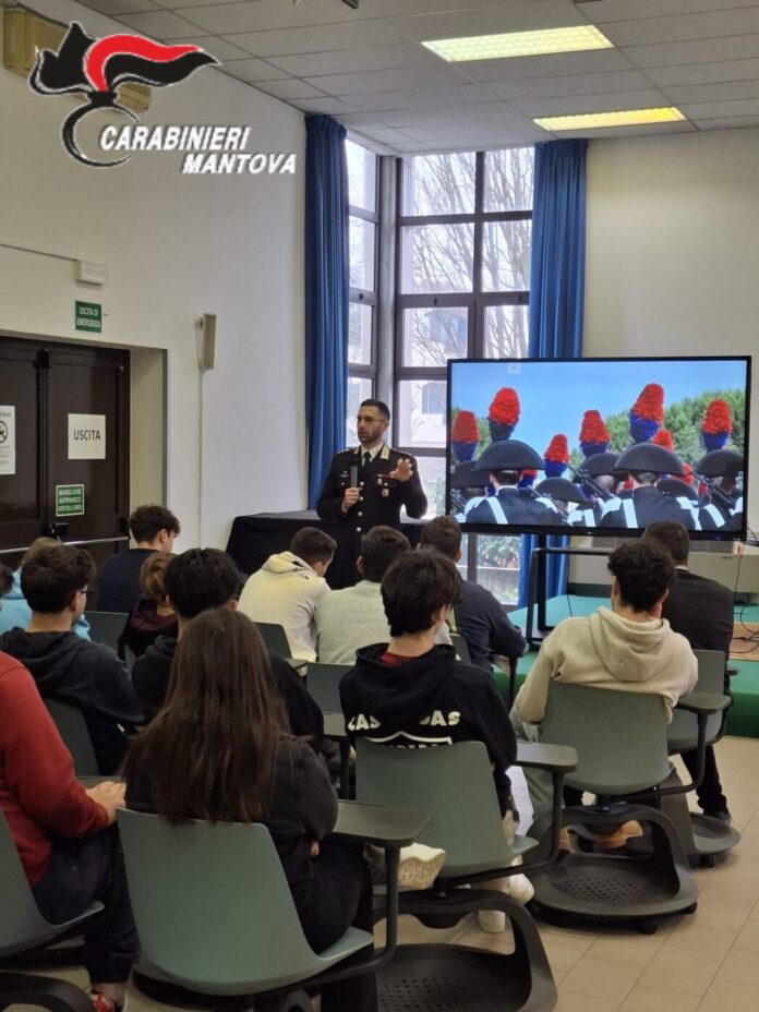 GAZOLDO DEGLI IPPOLITI L’Arma dei Carabinieri incontra gli studenti del territorio. Nell’ambito del progetto nazionale di formazione alla cultura della legalità, si è tenuto nella mattinata di ieri 5 marzo un incontro tra i militari dell’Arma e gli studenti dell’Istituto d’Istruzione Superiore “Giovanni Falcone” di Gazoldo degli Ippoliti. L’incontro, tenuto dal Comandante della Compagnia Carabinieri di Castiglione delle Stiviere, Capitano Giuseppe Calì, dal comandante della Stazione di Gazoldo degli Ippoliti Luogotenente Angelo De Gruttola e dal Comandante del Nucleo Carabinieri Forestali di Goito Maresciallo Matteo Turco, alla presenza del Vicepreside dell’istituto Salvatore Scalia, ha coinvolto circa 50 studenti delle 5^ classi ed ha trattato diverse problematiche di particolare interesse dei giovani, tra cui bullismo e cyberbullismo, il corretto utilizzo dei social network e le possibili conseguenze penali derivanti da condotte errate, oltre ad argomenti vari tra cui il rispetto dell’ambiente e del territorio.