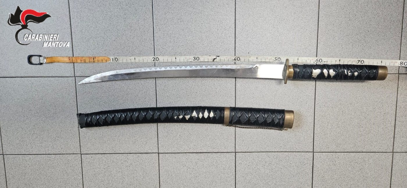 CURTATONE I Carabinieri della Stazione di Curtatone, nei giorni scorsi, a seguito di perquisizione domiciliare, hanno rinvenuto all’interno di un’abitazione 2 spade giapponesi del tipo “katana” della lunghezza rispettivamente di 95 cm e 75 cm, nonché 2 ogive esplose calibro 9 e calibro 50 e 11 bossoli esplosi calibro 9.
