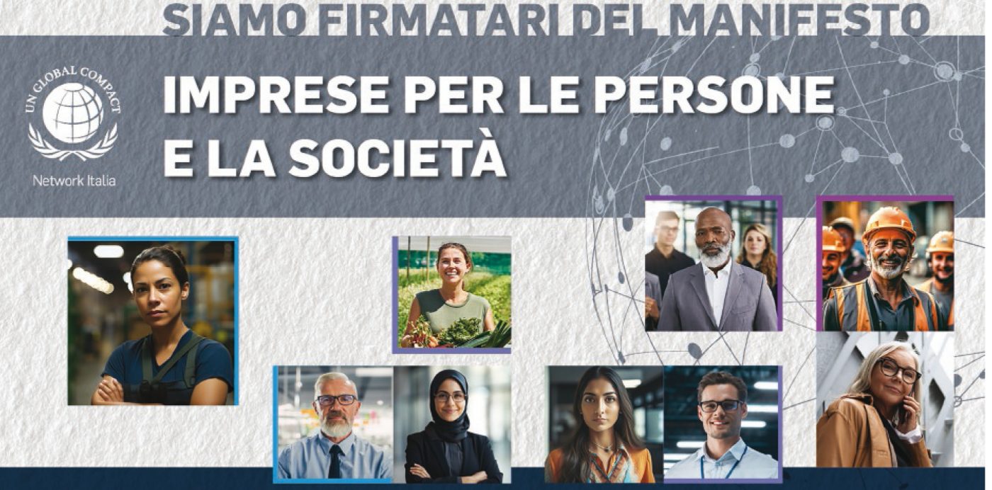 Siamo inoltre lieti di condividere la nostra adesione al Manifesto “Imprese per le Persone e la Società” di UN Global Compact Network Italia. Con la firma, ci impegniamo a rafforzare il ruolo della dimensione sociale della sostenibilità nelle nostre strategie aziendali, al fine di generare valore a lungo termine anche nella catena di fornitura e nelle comunità e contribuire alla creazione di società più inclusive, eque e prospere.