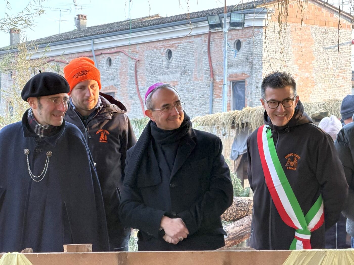 Nel corso dell’ultima rappresentazione, che si è tenuta nel pomeriggio di martedì, il Presepio Vivente piubeghese ha ricevuto anche la visita del vescovo di Mantova Marco Busca. Ricevuto dal vicesindaco Mirco Vipiana, dal parroco don Nicola Gardusi e da tanti volontari e figuranti, il vescovo ha visitato tutto il presepe, osservando e rimanendo piacevolmente stupito dalle ambientazioni realizzate durante il percorso, e arrivando infine alla capanna della Natività.