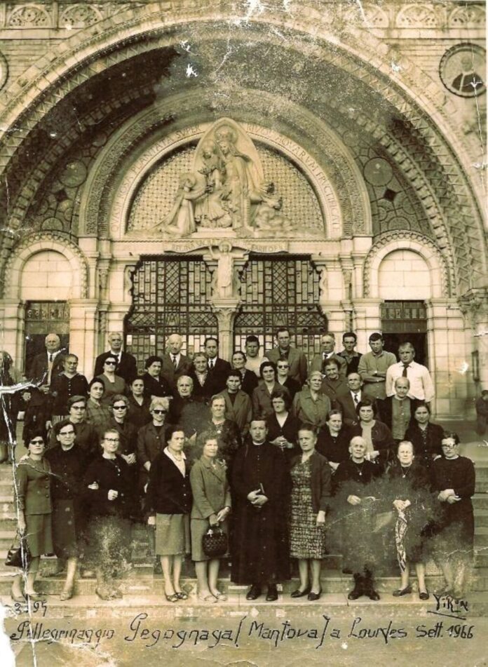 Pegognaga Ritrovate da Silvana Minelli Luppi alcune foto che documentano il primo pellegrinaggio di parrocchiani pegognaghesi a Lourdes, organizzato dal viceparroco dell’epoca don Renato Conia nel 1966, vale a dire sessant’anni fa. Pellegrinaggio fatto nel cuore del decennio del boom economico italiano, espressione di un conquistato benessere e perciò, giudicando a posteriori, improbabile che la comunità pegognaghese sentisse il bisogno di un sia pur temporaneo aiuto metafisico. Contestualizzando storicamente l’evento, erano passati poco più di quattro lustri dalla fine della seconda guerra mondiale. La cui onda lunga pesava ancora enormemente: vari reduci dal fronte portavano ancora evidenti cicatrici, tante famiglie non avevano ancora metabolizzato la perdita di cari e non pochi civili erano rimasti segnati nel morale e nella psiche dai bombardamenti. Forte era il bisogno di una guarigione psicoemotiva derivante dalla pratica religiosa, capace di ridare serenità e, per i dotati di salda fede, la totale guarigione. Raggiunta la grotta di Lourdes nonché visitata la basilica, qualcuno si ricordò che il luogo di culto non era molto distante da Montpellier, nel cui camposanto era sepolta Elena, la regina di Casa Savoia assai amata da gran parte degli italiani, essendo stata esempio di dedizione a sofferenti, poveri e emarginati indipendentemente dal ceto sociale, professione politica e credo religioso. Il pellegrinaggio a Lourdes divenne così anche omaggio all’umanità della regina, più che alla donna di rango. Nella foto sono individuabili: Irene Masella, gestrice dell’omonimo bar, Corina Rondelli Luitprandi, Virginia Gomini Pavesi, don Renato Conia, Isabella Mazzali, Isabella Catellani, Ada Piva, Lina Portioli Dall’Oglio, la fioraia Calotti, Bigliardi, Ilde Catellani, Selene Forapani, i fratelli Piero e Giovanni Bosi, la fornaia Zilocchi, Maria Mazzali gran benefattrice della parrocchia, Andrea Scardua, Giuseppe Luppi. (riclon)