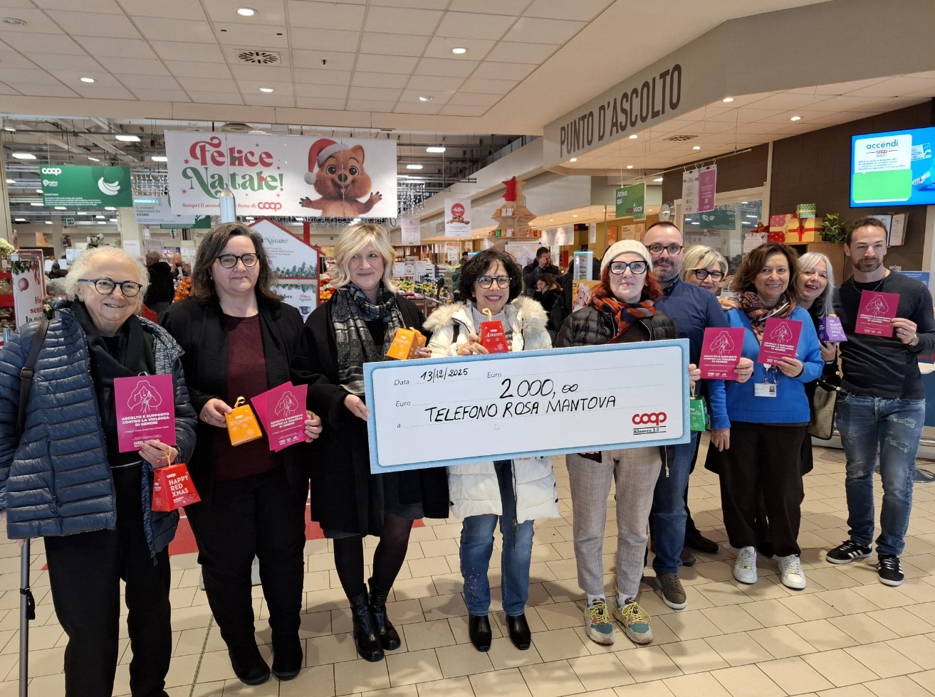 SUZZARA L’ipercoop di Suzzara è tra i 39 negozi Coop Alleanza 3.0 diventati “Punti Viola” ed entra ufficialmente nella rete nazionale di spazi sicuri, in partnership strategica con l’associazione DonnexStrada, che promuove la creazione di presidi di accoglienza aperti a chiunque si trovi in stato di pericolo. L’obiettivo dei negozi inseriti nell’elenco è quello di diventare un punto di riferimento nel territorio e garantire sostegno a chi si trova in difficoltà o in pericolo. «L’ingresso dell’ipercoop di Suzzara in questa rete rappresenta un impegno concreto verso la sicurezza e il benessere della nostra comunità. Essere un presidio dove chiunque può chiedere aiuto, sapendo di trovare personale formato e accogliente, è per noi un dovere prima ancora che una scelta», ha dichiarato Mirko Corniani, consigliere di amministrazione di Coop Alleanza 3.0. Un occhio di riguardo è rivolto al tema della violenza di genere, su cui si esprime l’assessore alle pari opportunità di Suzzara, Silvia Cavaletti: «Con questa iniziativa l’ipercoop della nostra città si schiera dalla parte delle donne vittima di violenza non soltanto fornendo protezione in casi di estrema necessità ma contribuendo alla diffusione di una cultura di parità e alla sensibilizzazione dei cittadini nei confronti di un fenomeno che sta assumendo i connotati dell’emergenza». Nella realtà dei fatti, Coop agisce, ad esempio, con i contratti integrativi che prevedono misure concrete per le donne vittime di violenza di genere, inclusi un’aspettativa retribuita fino a 3 anni, 90 giorni di permesso retribuito aggiuntivo per percorsi di protezione e, se necessario, il trasferimento facilitato in altri punti vendita. L’impegno, inoltre, prosegue con il protocollo siglato insieme alla Fondazione Giulia Cecchettin, attraverso il quale saranno relizzate azioni concrete di prevenzione. Durante l’incontro svoltosi nei giorni scorsi a Suzzara, è stato consegnato un contributo di 2mila euro all’avvocato Paola Mari dell’associazione Telefono Rosa di Mantova, raccolti attraverso la campagna “Una spesa per dire basta”.