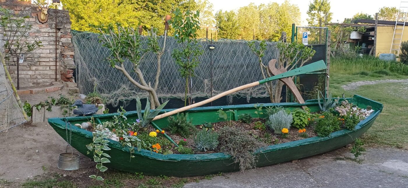 L’impegno profuso nelle scorse settimane da Daniela Mondini, Luca Tortorelli, Gabriele Spadi e Claudio Maduri si è tradotto nella realizzazione in Corte Pilota di un angolo nel quale si ricordano sia la figura del pescatore sia quella del barcaiolo. Nello spazio individuato è stata posta, oltre alla piantumazione di vari punti di alberi da frutto, un’imbarcazione tipica della zona che un tempo era di proprietà del pescatore Giulio Frigoni.