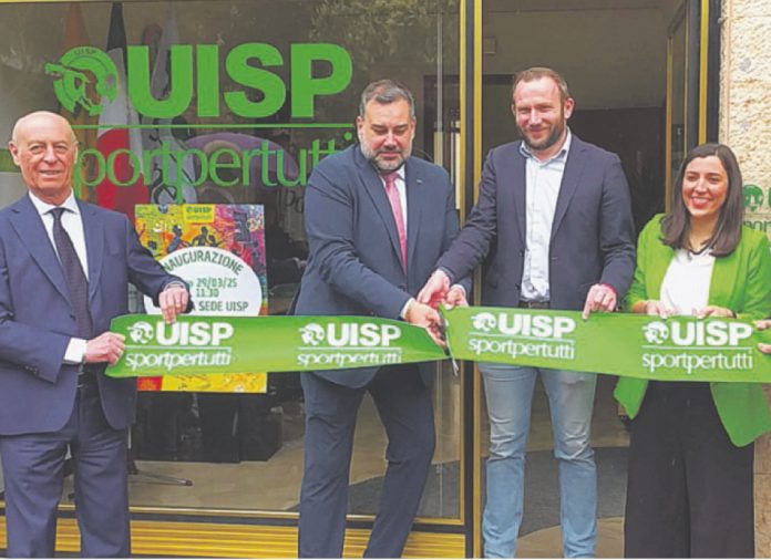 A tagliare il nastro, assieme al Commissario Franco Simone Alberto, anche Tiziano Pesce (Presidente Uisp Nazionale) e Tommaso Dorati (Segretario Generale Nazionale). Nuovi uffici in via Vittorino da Feltre, 63