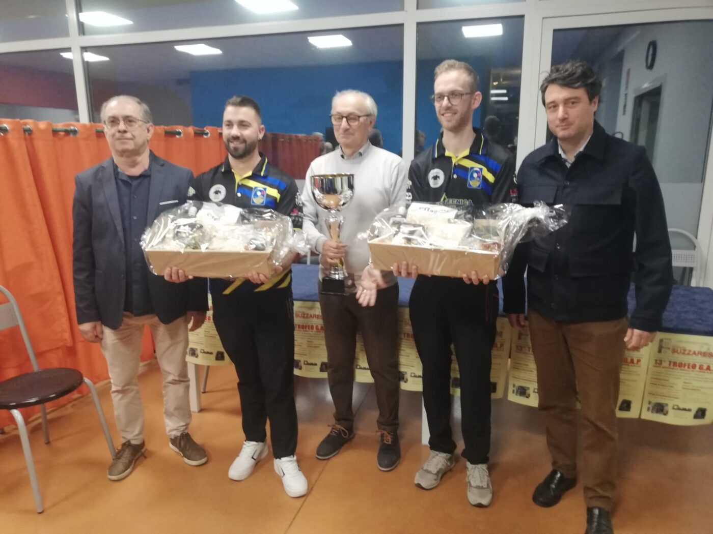 Mantova Nei giorni scorsi è giunto a conclusione il 14° Trofeo G.A.P, gara regionale, serale, organizzata dalla Società Bocciofila Suzzarese. Le fasi di qualificazione si sono svolte da lunedì 13 a venerdì 17 sulle corsie del G.A.P. e Suzzara. La finale si è giocata sabato al G.A.P. di Cerese. Direttore di gara, Riccardo Iori. Dopo una bella sfida, si sono classificati al primo posto Nicola Merlini-Francesco Busato del Jolly Verona); secondi Roberto Costi-Giancarlo Dall’Asta della Castelnovese (Mo). Terzi e quarti posti: Massimo Tessari-Massimo Dicembrini (A.R.C.I. Gonzaghese) e Stefano Carmagnoli-Massimiliano Berti (Sammartinese Modena). Dal quinto all’ottavo posto ecco Paolo Bolognesi-Luca Nadini (Baldini s.t.m. Bologna); Luigi Ansaloni-Claudio Ferrari (Modena Est); Claudio Bin-Riccardo Zaglio (Nuova Roverbellese); Maurizio Rampini-Giorgio Pradella (Arci Gonzaghese).