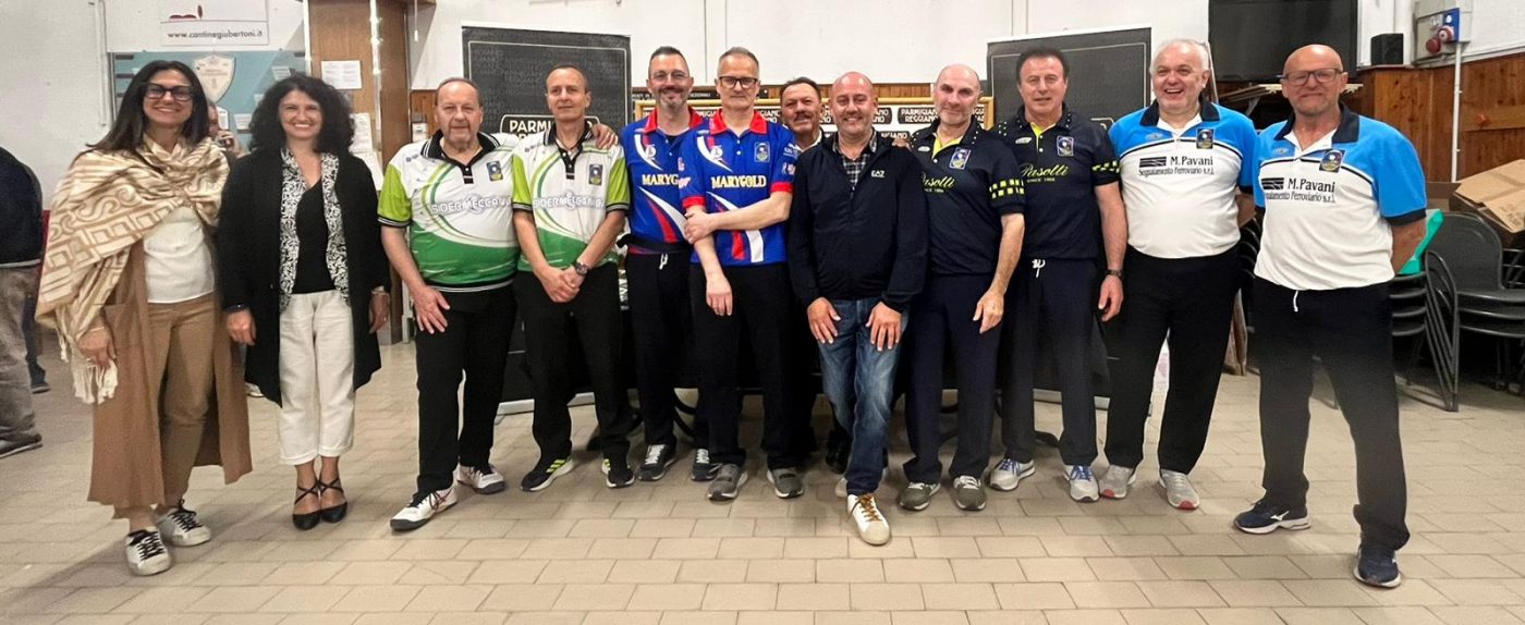 MANTOVA Si è svolto la settimana scorsa il 2° Trofeo Parmigiano Reggiano: si tratta di un gara regionale, serale, nella specialità di coppia, organizzata dalla bocciofila Arci Gonzaghese, con fasi eliminatorie svoltesi dal 5 all’8 maggio e sponsorizzata dal Consorzio Parmigiano Reggiano, sezione di Mantova. I primi classificati, con in premio una intera forma di Parmigiano Reggiano, sono stati Francesco Omodei-Fabio Saraceni, portacolori della Solferino Bocce. Al secondo posto, con mezza forma, Alessandro Carpi-Flavio Costantini del Cervo (Parma). Al terzo e quarto posto a pari merito, con un quarto di forma, Corrado Muzzini-Rodolfo Riolfi del P. F. Castellucchio e Remo Faccin-Massimo Cappi della Villa Pomese. Dal quinto all’ottavo, Ivo Venturini-Devis Lodi Rizzini della P. F. Castellucchio, Emilio Rossi-Michelangelo D’Addese della Dorando Pietri (Modena), Giovanni Dal Santo/Fausto Adami del Mozzecane (Vr), Enrico Corassori/Giuseppe Vergnani della Sammartinese (Mo). Direttore di gara, Romeo Bertolani. Le premiazioni con la partecipazione, del sindaco Elisabetta Galeotti, sono state condotte dal presidente Paolo Morselli, con i ringraziamenti a tutti i partecipanti e in modo particolare alla sezione del Parmigiano Reggiano, con il presidente Cristian Odini e il battitore Sante Spaggiari.