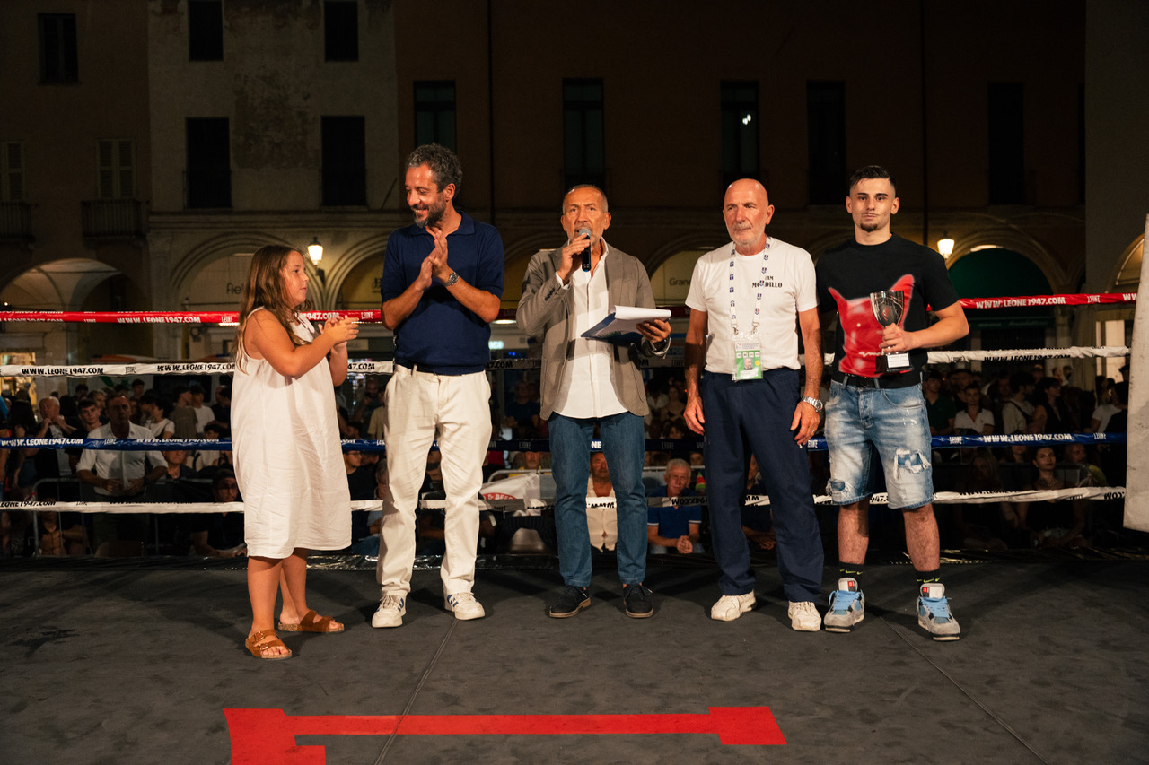 Mantova Grande successo di pubblico, giovedì sera, per l’11ª edizione del Memorial Attilio Lasagna, appuntamento ormai tradizionale dello sport mantovano. Piazza Broletto ha ospitato una serata di pugilato spettacolare, organizzata dal procuratore sportivo Francesco Ventura e dal maestro Bruno Falavigna per la Boxe Mantova, in collaborazione con Promo Boxe Italia, Confcommercio e con il patrocinio di Comune e Provincia. Un bagno di folla ha accolto l’evento, con appassionati e curiosi riuniti attorno al ring allestito davanti al bar di Marco Lasagna, figlio dell’indimenticato Attilio. Cuore della serata il match clou per il titolo italiano dei superwelter tra il veronese Mohammed Graich, della scuderia Ventura, e il romano Damiano Falcinelli, preceduto da cinque combattimenti dilettantistici e da due incontri tra professionisti. A inaugurare la riunione, scampata alla minaccia della pioggia, è stato il derby mantovano tra Nicolò Segala (Boxe Mantova) e Andrei Moloman (Mantova Ring), vinto ai punti da Segala che si è così aggiudicato la “Coppa Giulio Giovannoni” destinata al miglior pugile mantovano della serata. Nel secondo incontro, match femminile su tre riprese, Simrat Sharma (Boxe Guastalla) ha avuto la meglio ai punti su Elena Terribile (Boxe Academy Sassuolo) al termine di un confronto combattuto. Nei successivi tre match dilettantistici sono saliti sul ring tre pugili mantovani. L’Under 19 Moiz Asif (Boxe Mantova) ha affrontato Andrea Groppelli (Team Ruzze Brescia), ma si è trovato in difficoltà ed è stato fermato per sospensione cautelare. Niente da fare anche per Soumah Kandet (Mantova Ring), squalificato dopo tre richiami contro il più alto Francesco Valentino Elia (Club Pugilistico Rozzano). Mentre Rei Gabrieli (Boxe Mantova) ha superato ai punti il bresciano Samuele Viotti in un match tirato e ben condotto. Tra i professionisti, serata amara per gli atleti della scuderia Ventura. Il primo a salire sul ring è stato Amin Boutartour (Gordini Boxe Ravenna) che ha ceduto ai punti dopo sei riprese contro Osamwonyi Eye (Pugilistica Rodigina), più ordinato e con maggiore allungo. Poi l’esordio tra i pro per Antonio Mondillo (Boxe Mantova), opposto ad Alessandro Capuzzi (Promo Boxe Italia), al secondo match da professionista. Più tecnico Mondillo, più potente Capuzzi. Il pugile bresciano chiude in crescendo e al decimo round, dopo un inizio positivo dell’atleta di casa, piazza un destro decisivo che manda Mondillo al tappeto. KO pesante, ma fortunatamente senza conseguenze: il pugile si riprende dopo pochi minuti. L’ultimo e più atteso incontro della serata è stato appunto quello tra Graich e Falcinelli. Dieci riprese intense, con Graich avanti nella prima metà del match, abile a gestire distanza e ritmo. Ma nel finale Falcinelli cresce, soprattutto nell’ultima ripresa. Il verdetto, contestato dall’angolo di Graich, è di pareggio (per due giudici su tre), lasciando il titolo italiano dei superwelter ancora vacante. «Nella prima parte è stato lui a fare meglio – ha commentato Falcinelli – ma nella seconda metà sono uscito io. Il pareggio mi sembra giusto». Soddisfatto, ma con qualche rammarico, Francesco Ventura: «È stata una splendida serata di pugilato, che ci ha ripagato degli sforzi fatti. Dispiace per Boutartour e Mondillo, ma affrontare avversari di livello comporta dei rischi. Sono giovani, seri e con ampi margini di crescita. Quanto al titolo, è stato un match equilibrato e spettacolare: complimenti a entrambi. Peccato solo per quel mancato conteggio che, a mio avviso, avrebbe potuto cambiare l’esito del match. Per me, Graich aveva fatto qualcosa in più per meritare la vittoria». (smart)