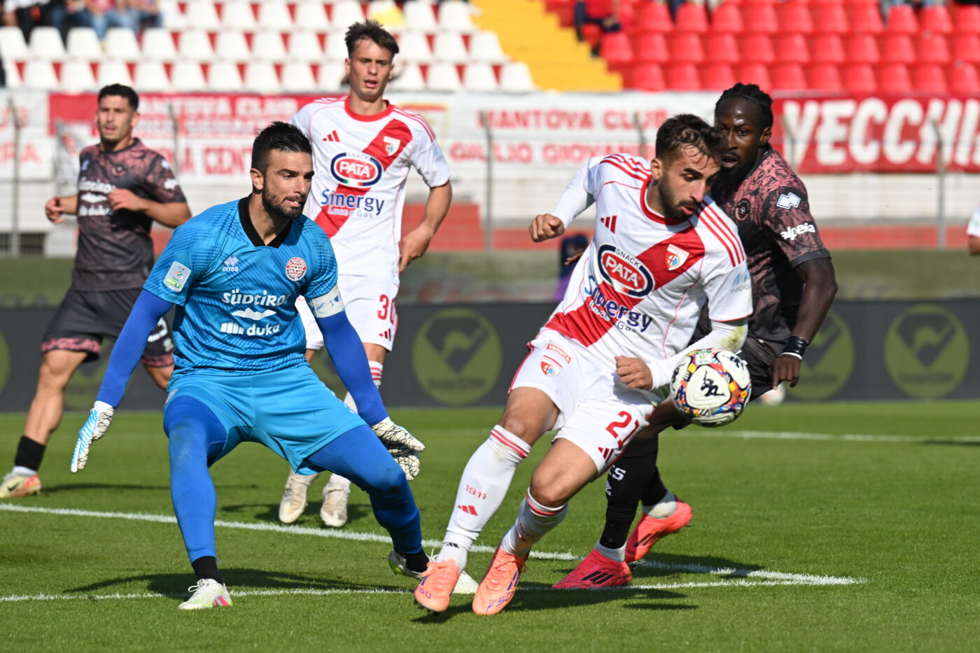 MANTOVA (4-3-3): Festa; Radaelli, Castellini (79′ Maggioni), Cella, Bani; Paoletti (59′ Mancuso), Artioli (80′ Majer), Trimboli; Bragantini, Bonfanti (69′ Mensah), Ruocco (69′ Fiori). A disp.: Andrenacci, Wieser, Galuppini, Falletti, Fedel, Marras, Pittino.