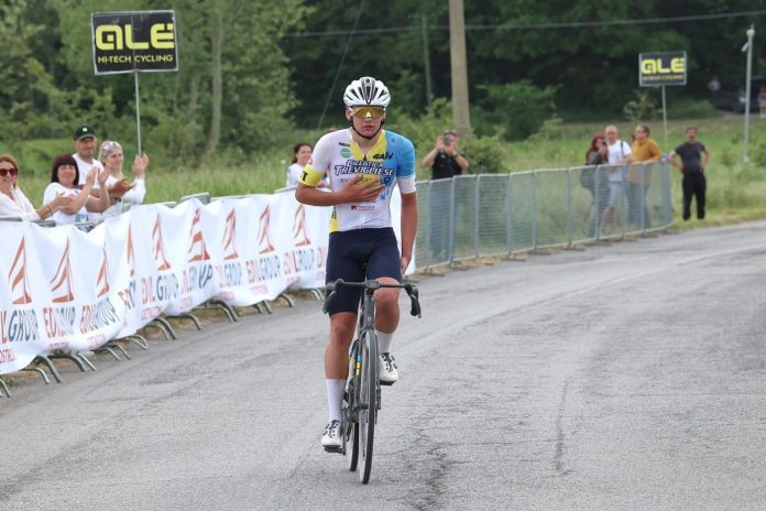 Castiglione d/S Il campione del mondo juniores di ciclocross Mattia Agostinacchio della Trevigliese ha posto la propria firma sull’albo d’oro del 1° Trofeo Edil Group Costruzioni Piccolo Giro delle Fiandre dei Colli Morenici. Finale super per la competizione riservata agli juniores e allestita dall’Uc Ceresarese con la collaborazione del responsabile dell’Edil Group Costruzioni Walter Chicchi, il Comune e il Comitato provinciale Fci. Per i colori mantovani da sottolineare il 10° posto di Sergio Ferrari dell’Ecotek che gli è valso il titolo di campione provinciale della categoria. Sulla linea di partenza di questo test, che ha fatto il suo debutto nel calendario mantovano e che lungo il circuito di 10,400 km presentava un tratto in sterrato, si sono presentati quasi 200 atleti. Complessivamente hanno pedalato per 114,400 km e come nelle previsioni non c’è stato un momento di rallentamento dell’andatura. Viste le caratteristiche del percorso, le squadre che presentavano forti velocisti avevano il compito di gestire ogni fase della corsa. Sin dalle prime pedalate, quindi, lo spettacolo è stato ai massimi livelli grazie a continue fughe e controfughe che hanno costretto il gruppo a un duro lavoro di controllo. Controllo che però ha perso di efficacia quando a fare l’andatura si è portato Mattia Agostinacchio. Il campione del mondo del ciclocross chilometro dopo chilometro è divenuto il padrone della corsa e ha posto tra sé e gli immediati inseguitori più di 3’. Nel finale il fuggitivo ha continuato nella sua azione presentandosi solitario sotto lo striscione d’arrivo; alla spicciolata si sono presentati sul traguardo gli inseguitori. La piazza d’onore l’ha conquistata il compagno di squadra Kevin Bertoncelli, mentre Francesco Dossi del Montecorona è salito sull’ultimo gradino del podio. A seguire le varie fasi della competizione vi è stato l’onorevole e vice sindaco del capoluogo aloisiano Andrea Dara. Con lui vi erano pure il presidente provinciale Fci Fausto Armanini, il vice Giovanni Comparin e i consiglieri Franco Favalli e Stefano Lodi Rizzini.