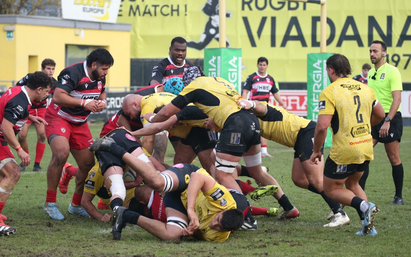 La cronaca. Inizio non ideale per i leoni gialloneri che già al 3’ sono obbligati a un cambio in prima linea per l’infortunio a Dorronsoro che lascia il campo per Casasola. Al 7’ il mancato rotolamento di un placcatore giallonero sblocca il risultato con Perello preciso dalla piazzola. I mantovani cercano di invertire l’inerzia iniziale della gara, la costruzione è buona, ma non altrettanto la finalizzazione con situazioni offensive in cui l’ovale cade in avanti nei ventidue avversari. In questa fase è Jannelli che prova a suonare la carica, ma al 23’ la gara si fa ancora più in salita per il cartellino giallo mostrato al pilone Alan Oubiña per placcaggio non ortodosso con conseguente inferiorità numerica di dieci minuti. Per pareggiare le prime linee in mischia esce Bussaglia ed entra temporaneamente Mistretta. Viadana continua a mettere pressione con i veneti che difendono con logoramento e qualche fallo che non porta a sanzioni per i Rangers, mentre arriva un nuovo giallo per Viadana a Catalano porta i mantovani a giocare in 13 contro 15. Al 29’ arriva l’ammonizione per Gomez. Il ritmo della gara non decolla e le asperità dei punti d’incontro sono ruvide, a discapito della fluidità del gioco, con Vicenza che riceve il secondo richiamo ufficiale per un placcaggio in ritardo su Ferro. Al 38’ Leaupepe è colto in fuorigioco nei propri dieci metri, nonostante il precedente richiamo, arriva solo un semplice calcio di punizione. Una deludente prima frazione di gioco si chiude sul 3-0 per le linci vicentine. Il secondo tempo inizia sullo stesso copione del primo con i padroni di casa, che trovano la meta con Vunisa trasformata da Perello per un parziale appannaggio dei veneti per 10-0. Al 51’ Ciofani ci prova con una soluzione personale con calcio a seguire, ma Panunzi annulla. Al 54′ arriva un nuovo cartellino per Viadana con Casasola che placca irregolarmente Leaupepe e Vicenza allunga ancora. Al 56’ Viadana toglie lo zero dal tabellone segnapunti con un calcio ai pali di Ferro. Allo scoccare dell’ora di gioco arriva il secondo squillo dei Rangers con Tavuyara. Al 67’ arriva la terza metà biancorossa che chiude la contesa, anche se al 74’ la metà di forza di Casola accorcia le distanze. All’ultimo minuto arriva il cartellino rosso per Gomez e la meta tecnica per Viadana (32-15).