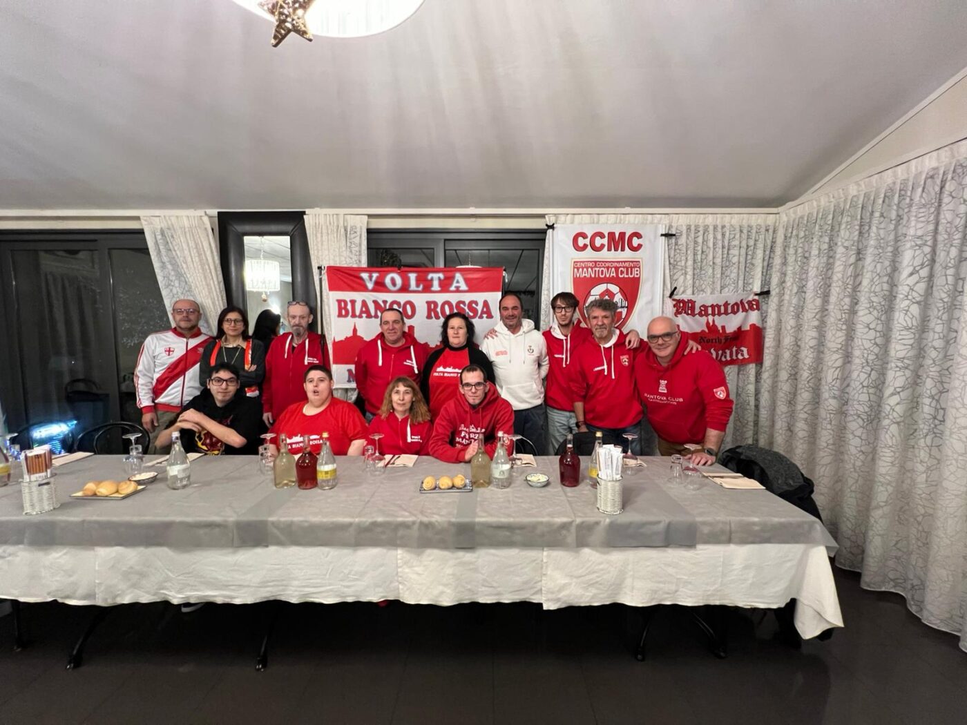 Volta Mantovana Decine di tifosi si sono radunati mercoledì al ristorante pizzeria La Sqola di Volta Mantovana. Si è festeggiato il Mantova Club Volta Biancorossa presieduto da Ivan Franzoni. Lotteria, sorrisi, cori di sostegno all’Acm (e qualche malumore per il divieto di trasferte) nel ricco menù della serata. Decisamente riuscita.