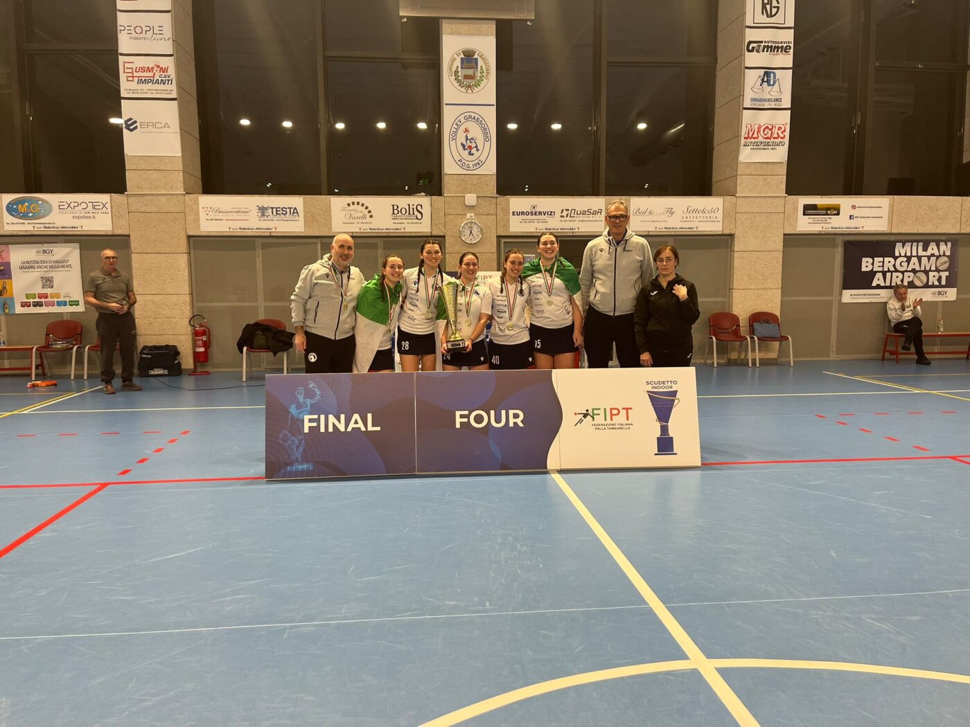 Cavriana Entusiasmo alle stelle in casa della Cavrianese per l’ennesimo titolo conquistato nella specialità del tamburello indoor. Domenica a Grassobio (Bg) si sono svolte le finali nazionali di A2 femminile e a conquistare il tricolore sono state le ragazze dirette da Vittorio Beatini. Il cammino che le ha portate al successo finale è stato caratterizzato da due vittorie e una sconfitta. Con il Torrita non c’è stata storia visto che la gara si è conclusa con il punteggio di 13-0 per le atlete del presidente Oscar Tondini, tecnicamente di un altro livello. Nella seconda sfida in programma hanno poi perso con il Nave San Rocco per 9-13; infine nel match con il Segno, che era valido per il primato in classifica, le collinari si sono imposte per 13-4. Ad esultare per questo importante traguardo sono state: Benedetta Premili, capitano, Gloria Tondini, Linda Residori, Giada e Sofia Beatini.