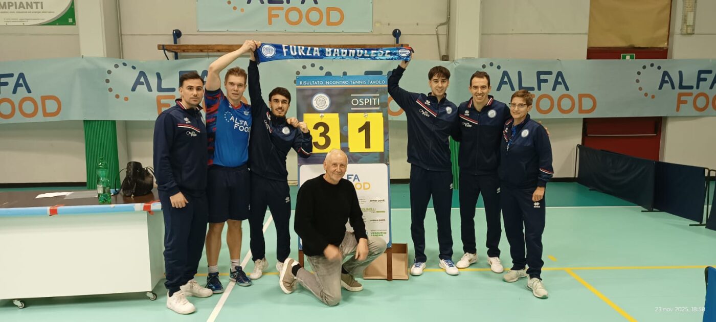 BAGNOLO SAN VITO L’Alfa Food Bagnolese non si ferma. Nella quinta giornata, davanti al suo pubblico, ha battuto per 3-1 la Virtus Servigliano e ha raggiunto al comando il Tennistavolo Sassari, che ha vinto 3-2 col Marcozzi, incassando quindi solo 2 punti.