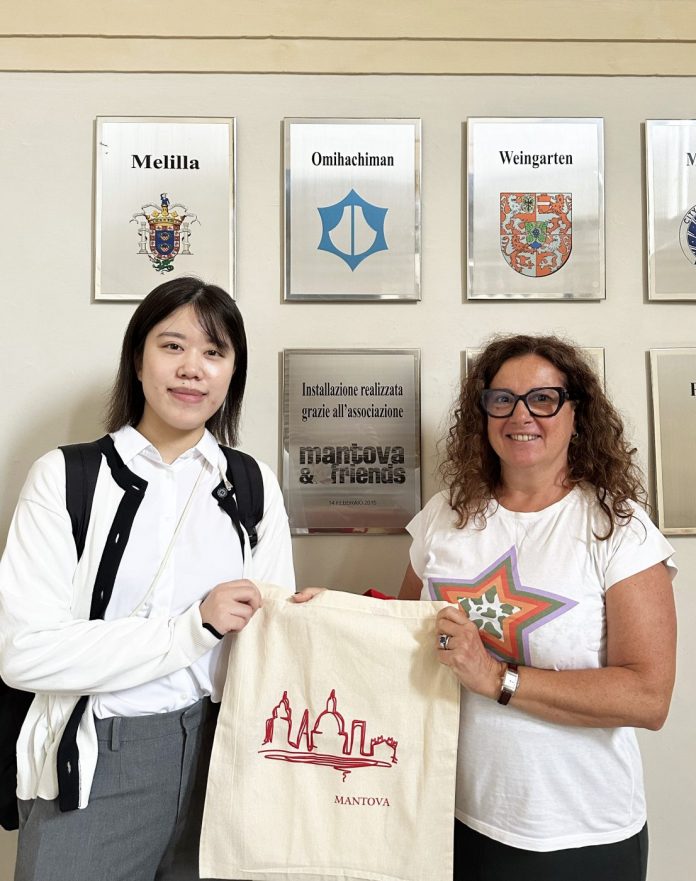 Tomoka Takemura è stata accolta, martedì 2 settembre, presso il Municipio di via Roma 39, dalla responsabile dei Gemellaggi del Comune di Mantova Maddalena Portioli e dalla dipendente comunale Cristina Regattieri.