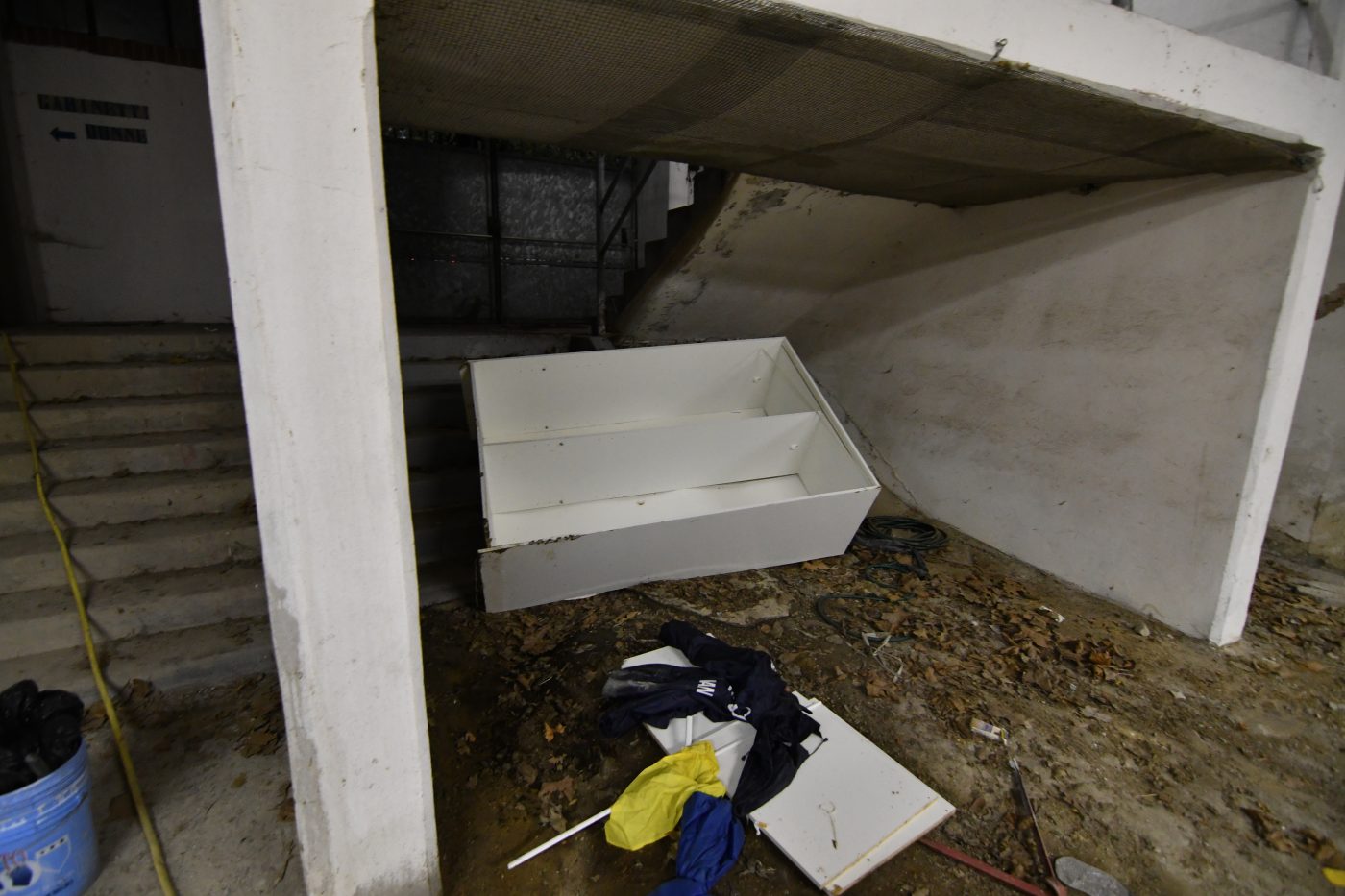 Si tratta di una sorta di discarica per vecchia cartellonistica, panchine inutilizzate, attrezzi per il campo, mobili e tantissime altre cose abbandonate da tempo. Paradossalmente i bagni sono ciò che di più fruibile si può vedere in un contesto completamente alla deriva.