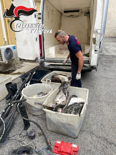 Il veicolo e gli strumenti utilizzati per la pesca, reti comprese, sono stati sequestrati dai Carabinieri, mentre il pescato è stato distrutto da personale della Provincia di Mantova.